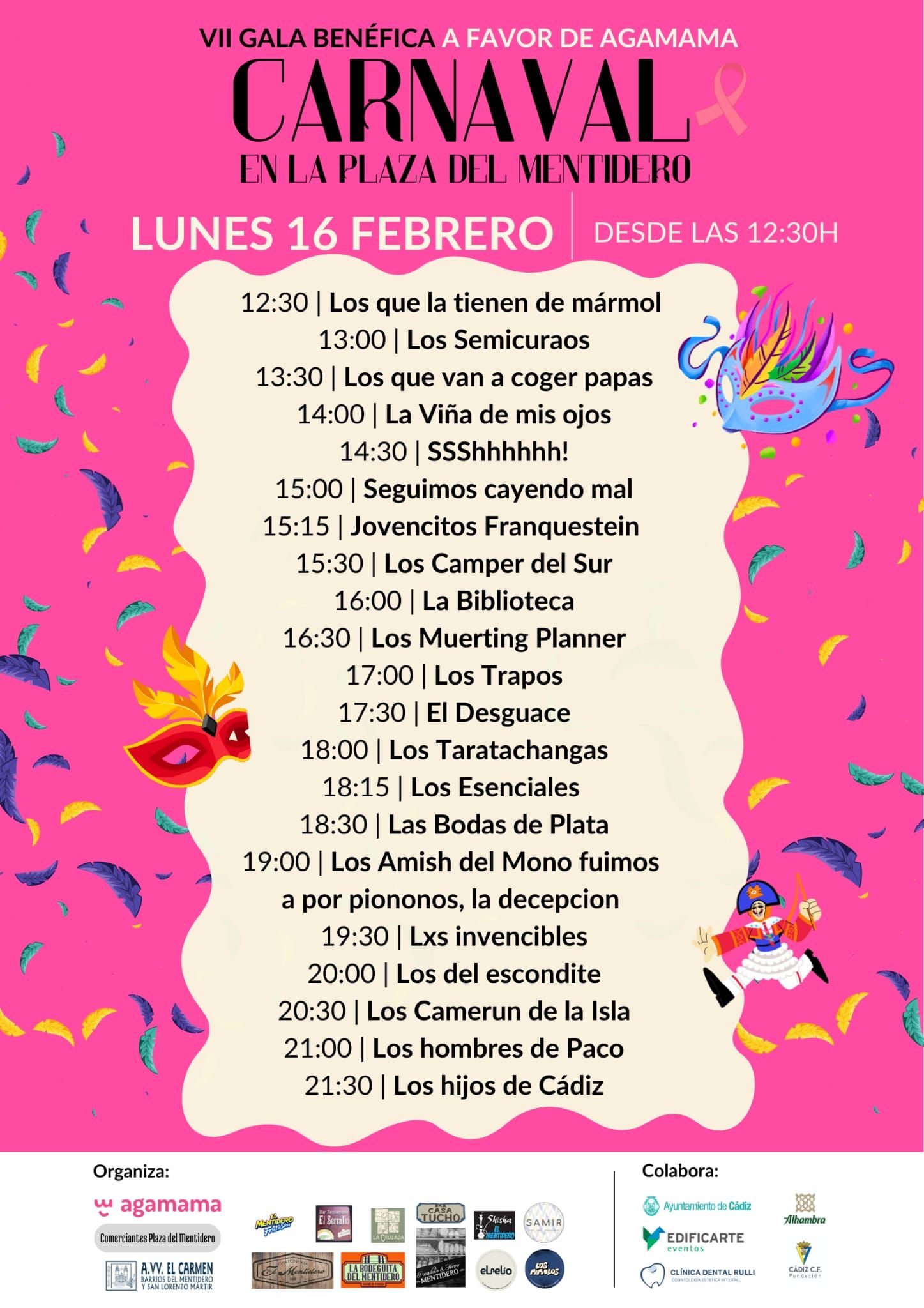 Lunes 16 de febrero. Programación del Carnaval de Cádiz 2026