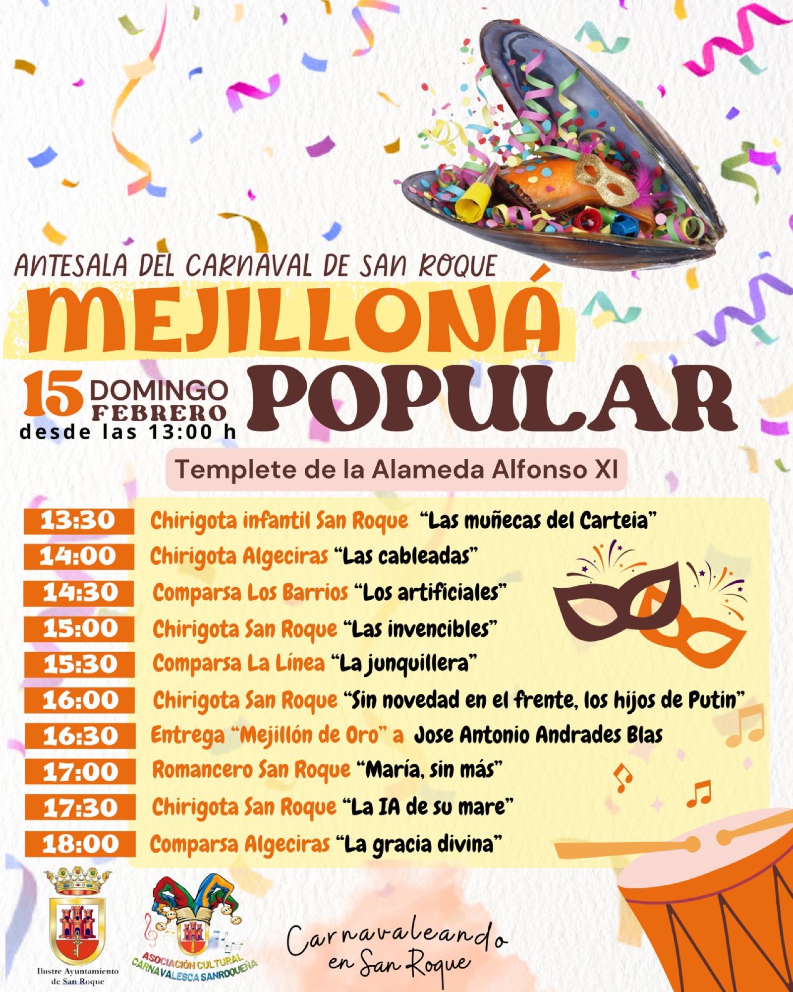 Alameda Alfonso XI la Mejilloná Popular de la Asociación Cultural Carnavalesca Sanroqueña, con la colaboración del Ayuntamiento.