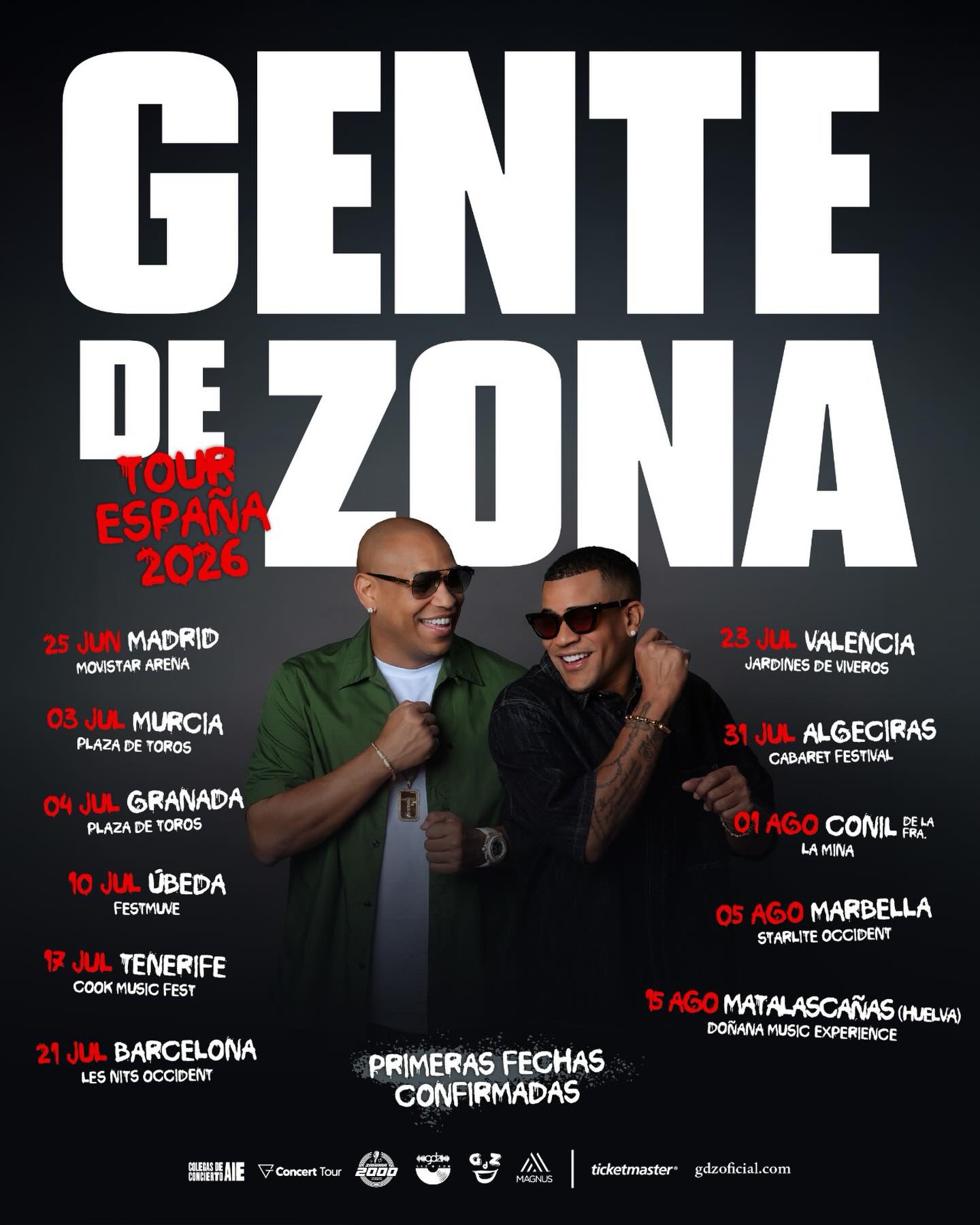 Cabaret Festival Algeciras el próximo 31 de julio en el marco de su Tour España 2026, la primera gira que realizan por nuestro país. Convertido en uno de los nombres más reconocidos a nivel mundial en su trayectoria cuentan con 12 Latin Billboards y son el primer dúo cubano en llegar a las HOT Latin Songs de Billboards. Además, Gente de Zona ha colaborado con artistas de la talla de Enrique Iglesias, Marc Anthony, Kylie Minogue, Thalía, Pitbull, Jennifer López o Carlos Vives entre otros.
