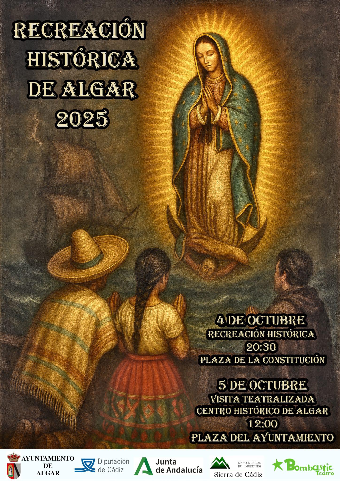 4 y 5 de octubre de 2025, Algar se engalana de motivos mexicanos para rememorar su fundación en 1773 y la bella historia sobre la que se sustenta: la promesa de Domingo López de Carvajal, vizconde de Carrión y marqués de Atalaya Bermeja, a la Virgen de Guadalupe de fundar un pueblo en la Sierra de Cádiz si lograba salvarse de una tempestad en medio del Atlántico.