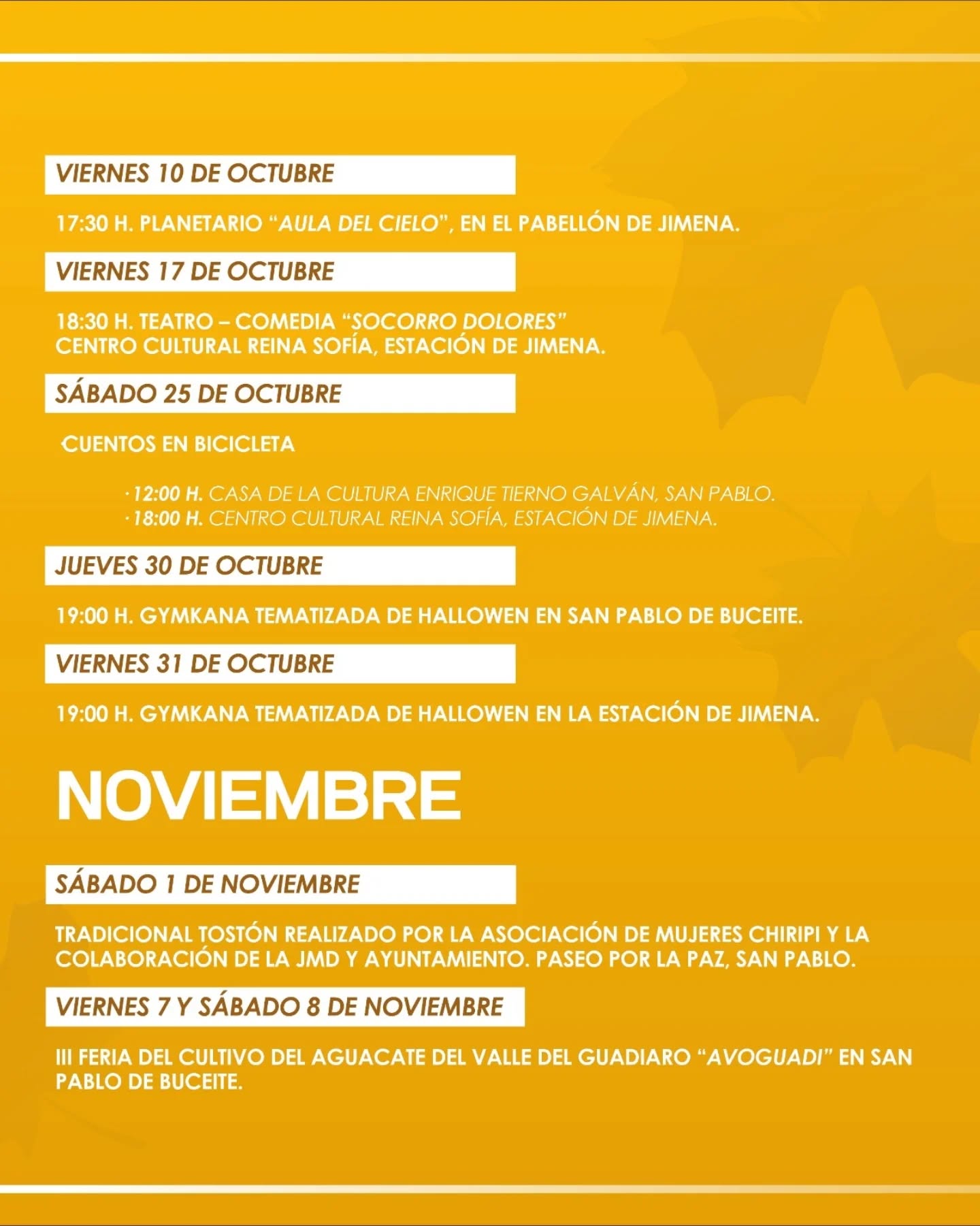 Agenda de otoño Jimena de la Frontera 2025 - Eventos culturales | Agenda de Guía de Cádiz