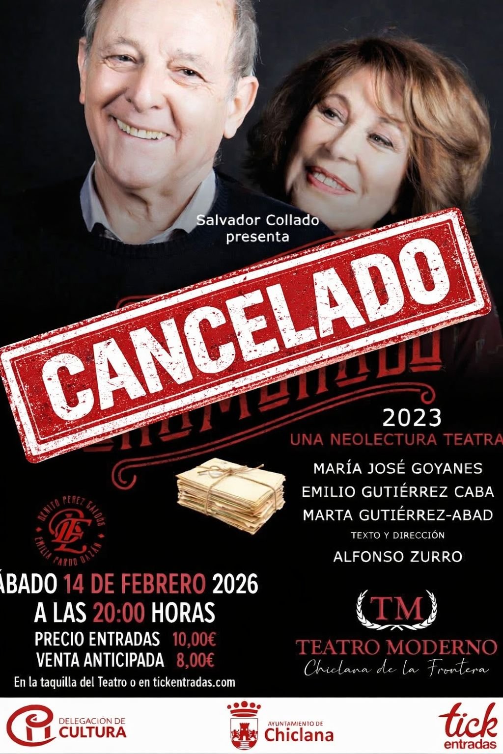 La representación de la obra ‘Galdós enamorado 2023. Una neolectura teatral’, prevista para este sábado, 14 de febrero, a partir de las 20.00 horas en el Teatro Moderno, ha tenido que ser cancelada de manera definitiva por causas ajenas al Ayuntamiento de Chiclana.