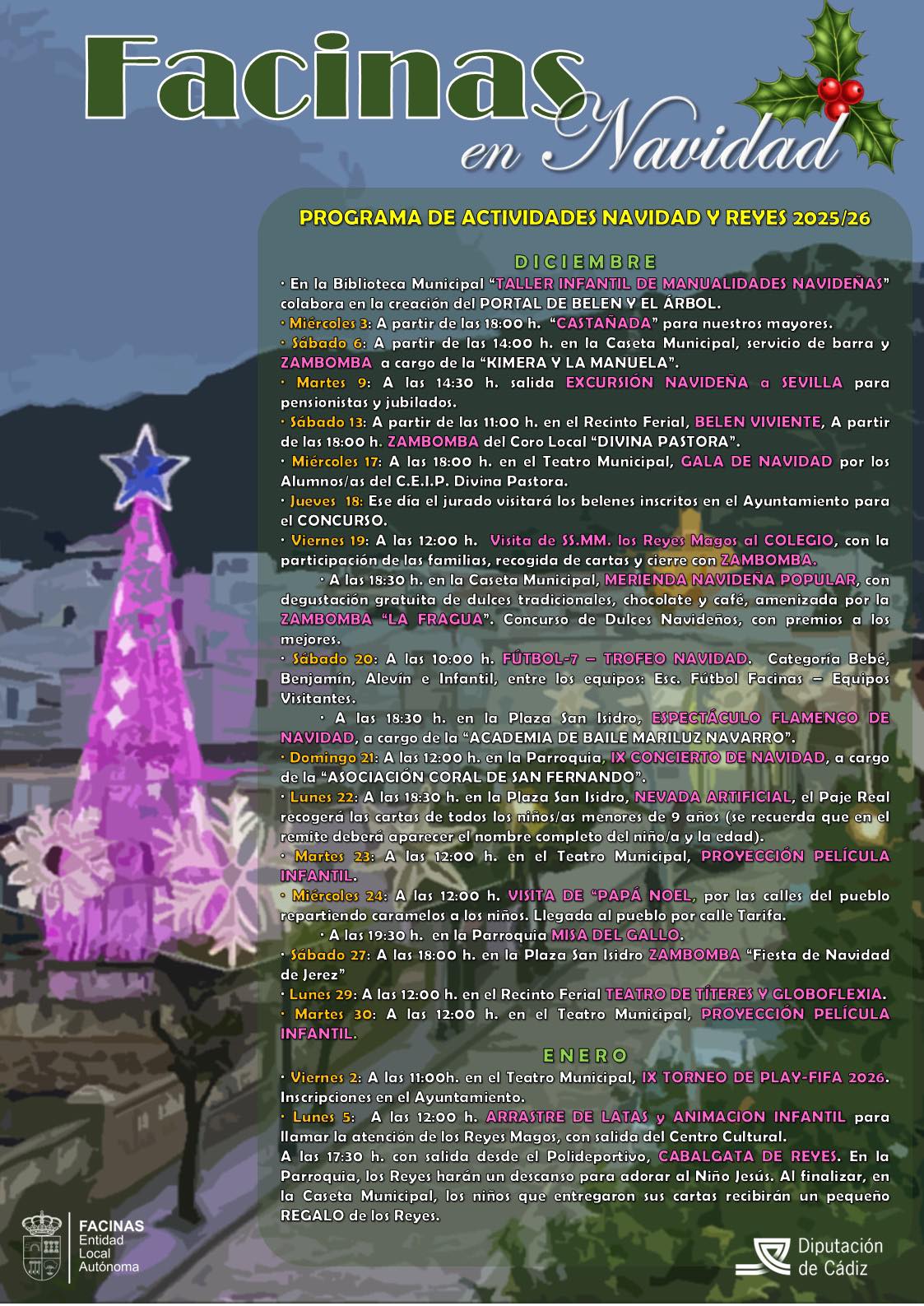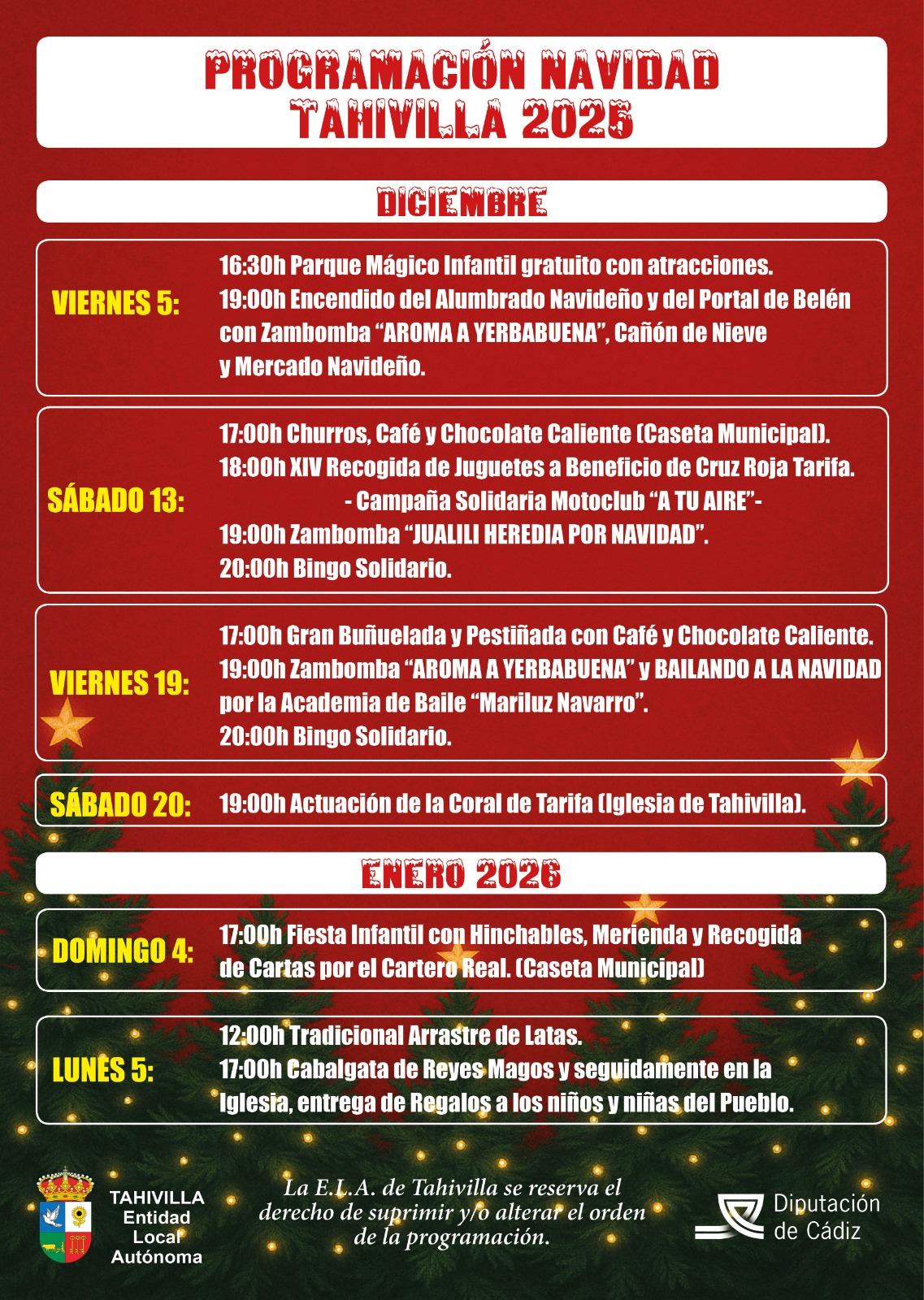 Las distintas delegaciones del Ayuntamiento han preparado una densa agenda de actividades navideñas que se podrá consultar en la página web del Ayuntamiento de San Roque: https://www.sanroque.es/navidad2025. Fecha, horarios, escenarios y tipo de eventos, junto al resto de detalles de todos y cada uno de los eventos organizados se pueden encontrar en la citada página web.