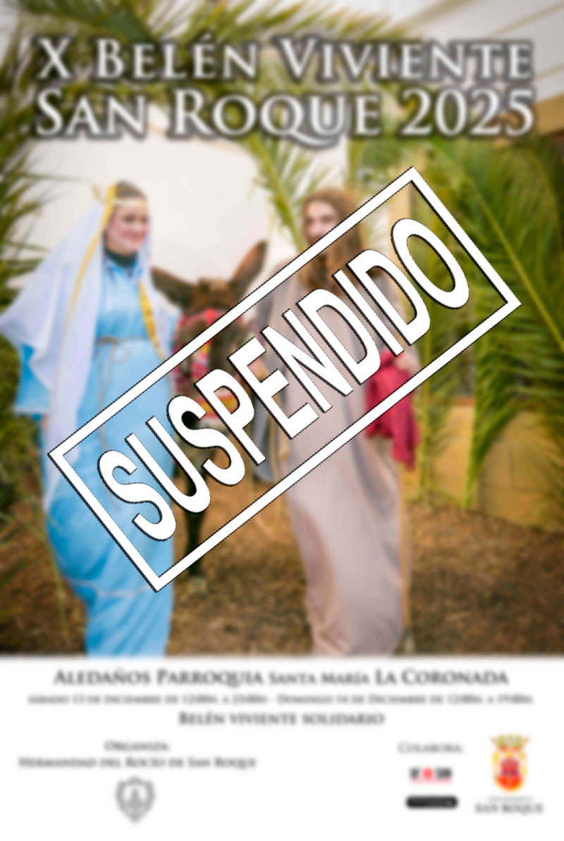 Visto la previsión del tiempo para este fin de semana la Hermandad del Rocío de San Roque, ha decido suspender el Belén Viviente de San Roque por seguridad de los participantes.
