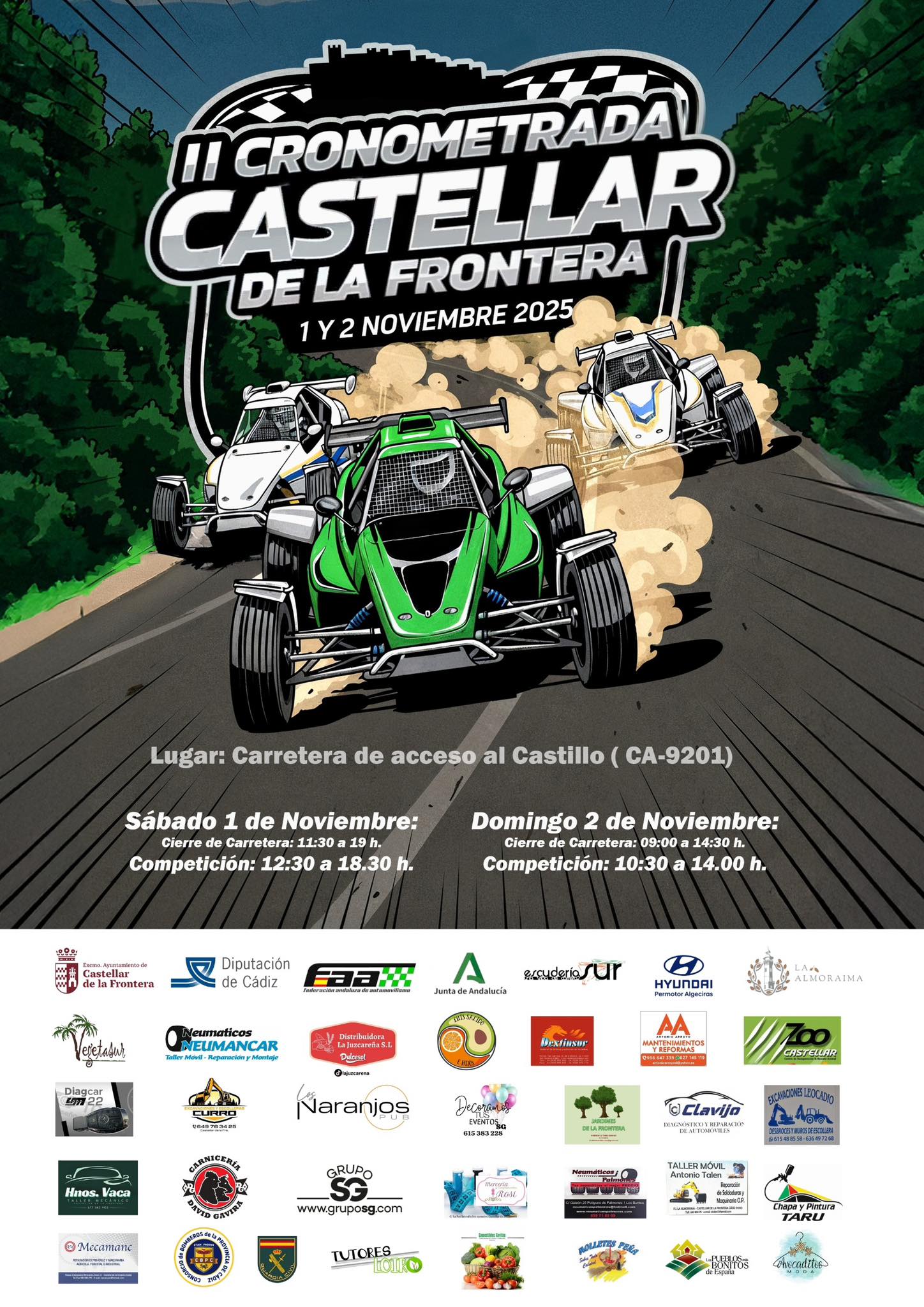 Castellar de la Frontera acogerá los próximos 1 y 2 de noviembre la Cronometrada Castellar de la Frontera, organizada por Escudería Sur, una cita señalada en el calendario andaluz del motor. El recorrido se disputará en la carretera CA-9201, con salida en la Venta Jarandilla (km 4,5) y llegada en el hito 5,7, con un total de 1.200 metros de longitud.