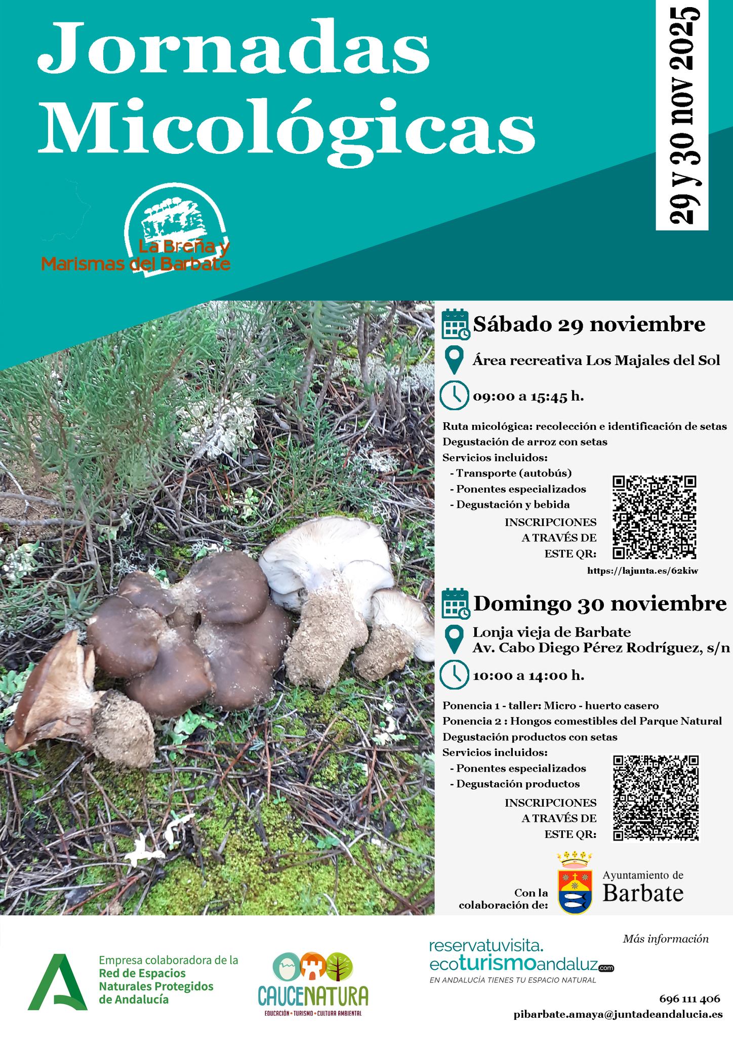 Vuelven las Jornadas Micológicas del Parque Natural La Breña y Marismas del Barbate, con un fin de semana dedicado al conocimiento y disfrute del mundo de las setas y los hongos. Las actividades son gratuitas y requieren inscripción previa.