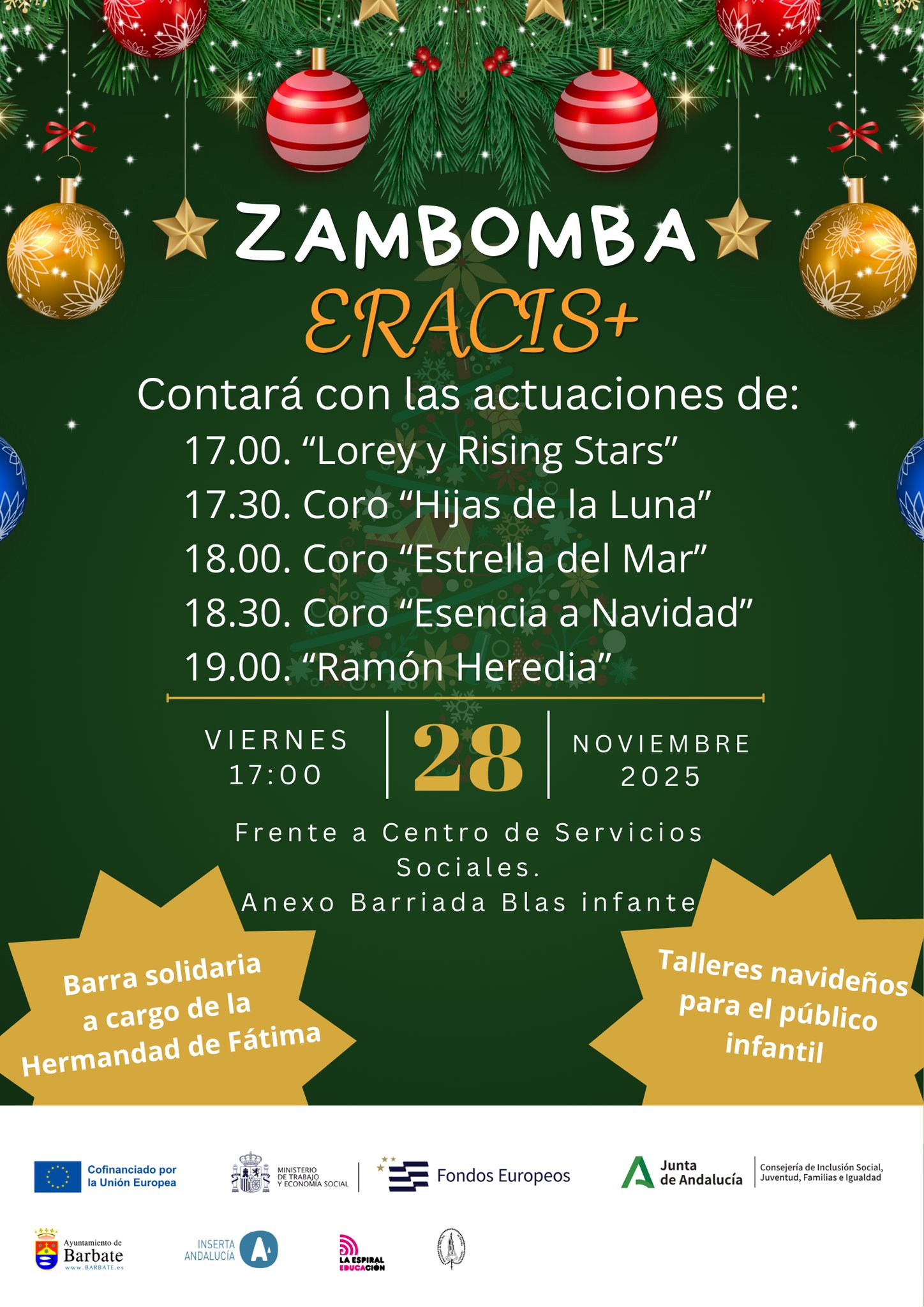 La Delegación de Fiestas del Ayuntamiento de Barbate informa de la celebración de la V Zambomba Flamenca “Barbate por Navidad”, que tendrá lugar el domingo 23 de noviembre en el Parque Infanta Elena, a partir de las 13:00 horas.