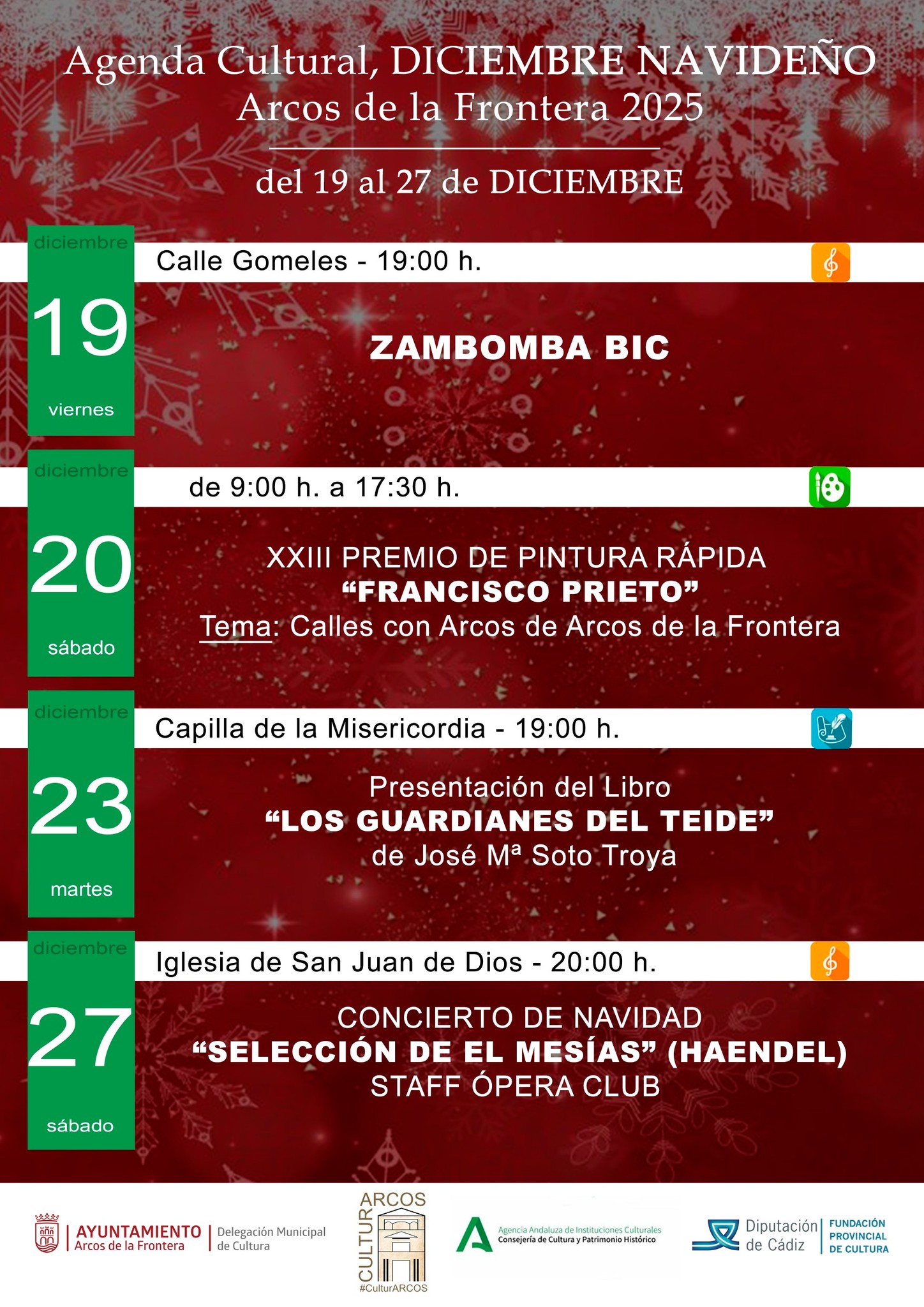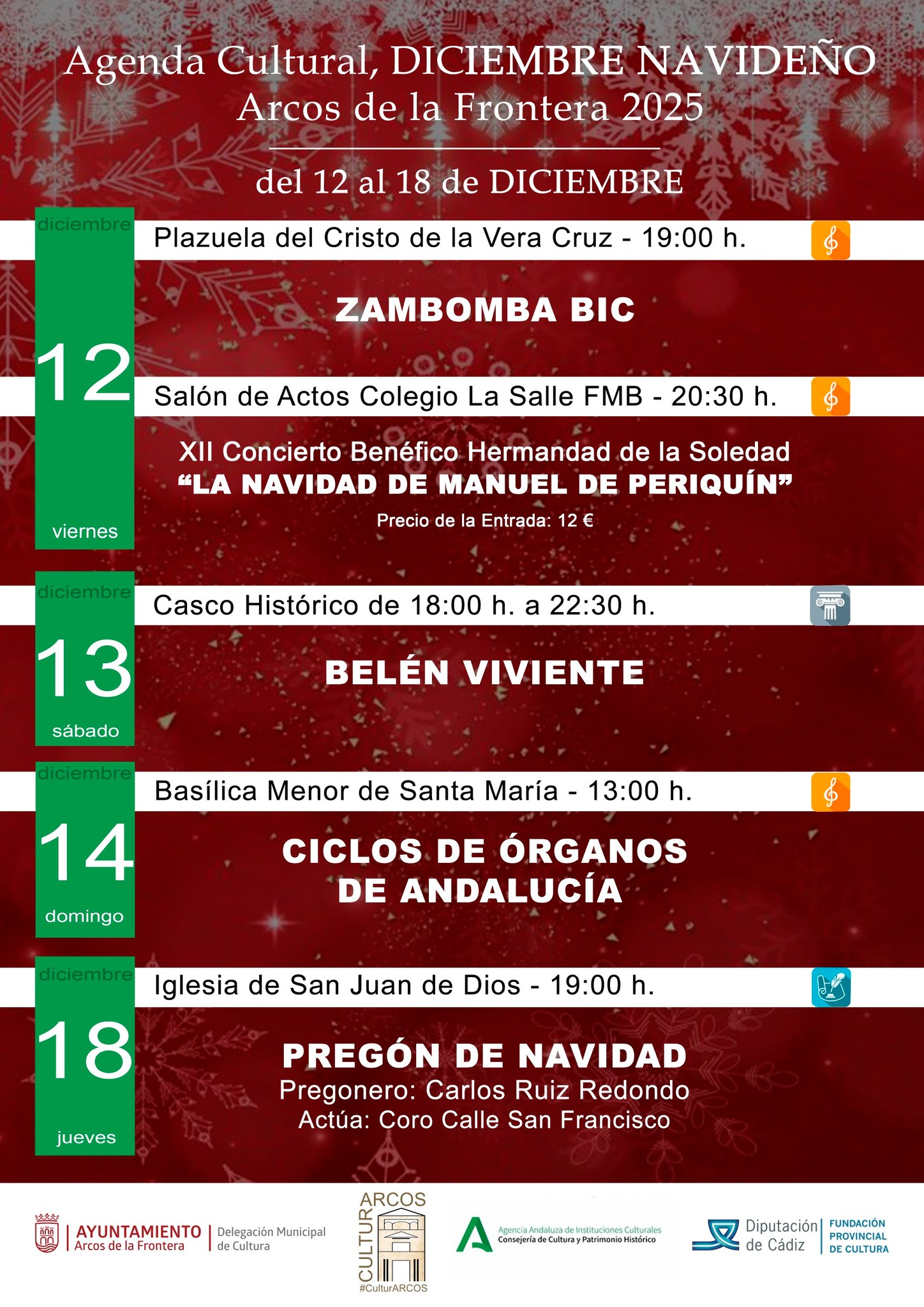 Una cita muy especial en la que Arcos revive su historia y su espíritu navideño, llevando la música y la alegría a calles, plazas y patios, con el sabor auténtico de nuestras tradiciones.