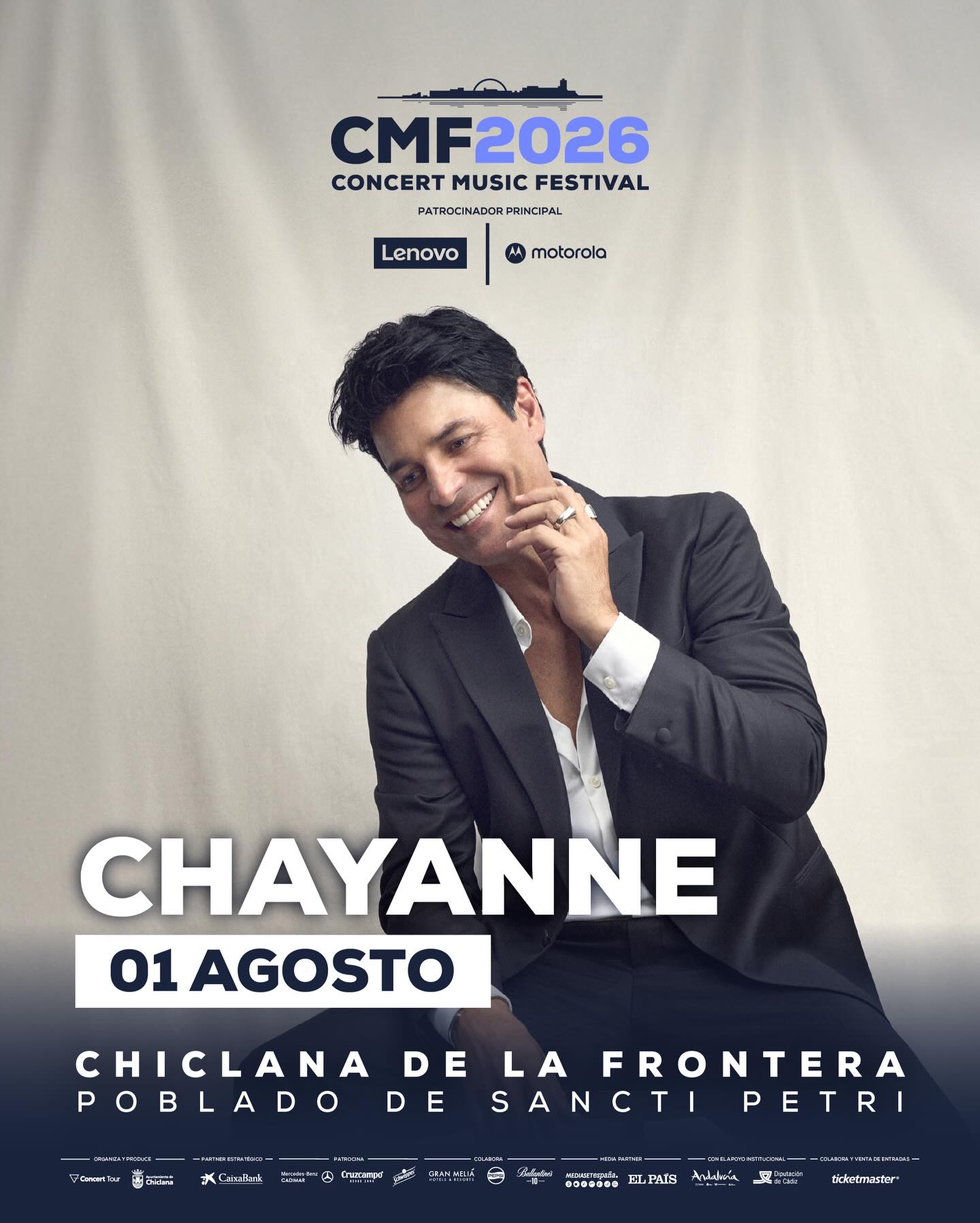 Chayanne será uno de los grandes protagonistas del Concert Music Festival 2026, con un concierto programado para el 1 de agosto de 2026 en el Poblado de Sancti Petri, en Chiclana de la Frontera (Cádiz).
