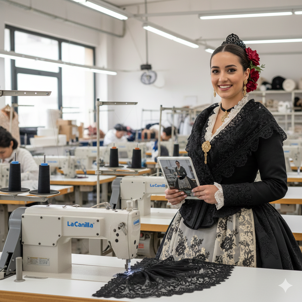 El traje gaditano de piconera se puede confeccionar hoy día con máquinas de coser industriales como las de La Canilla