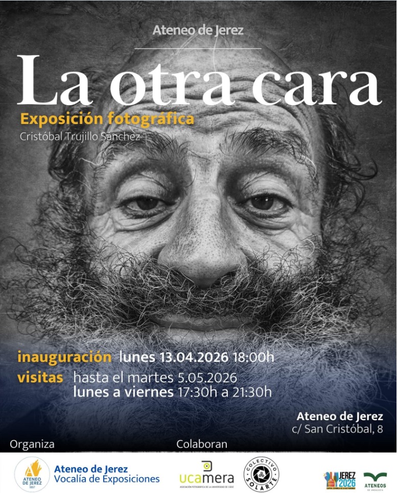El Ateneo de Jerez inaugura este lunes 13 de abril a las 18:00 horas la exposición “La otra cara”, en la sala María Manuel Pozo del Ateneo de Jerez, sito en la calle San Cristóbal, 8. El horario de visitas, tras su inauguración y hasta el 5 de mayo, será de lunes a viernes de 17:30 a 21:30 horas. La entrada es libre hasta completar aforo.