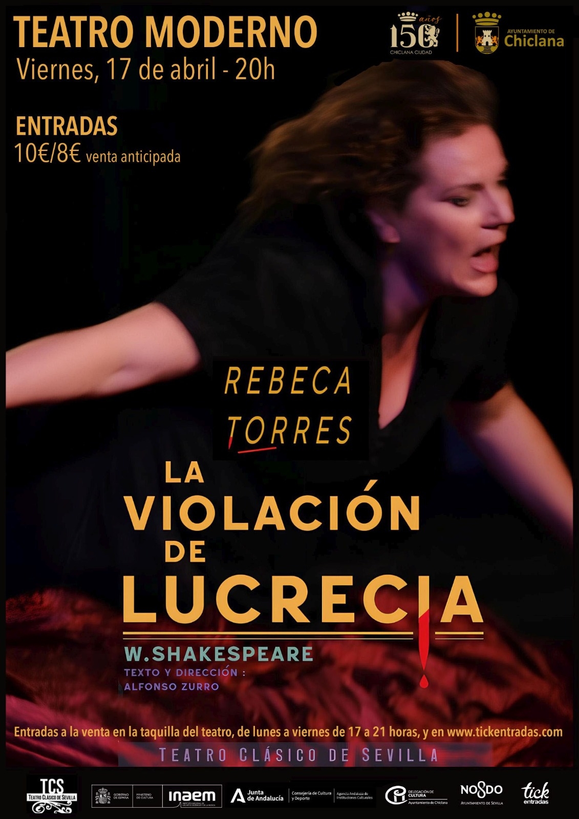El Teatro Moderno recibe este viernes, 17 de abril, a las 20.00 horas a la compañía Teatro Clásico de Sevilla para la puesta en escena de la obra ‘La violación de Lucrecia’, pieza que se asienta en el poema del mismo nombre que William Shakespeare escribiera en 1594 y que tiene su origen en un suceso histórico ocurrido en Roma, en el año 500 años a.C, descrito tanto por Ovido como por Tito Livio: la violación de una dama romana, llamada Lucrecia, por parte del príncipe Tarquino.