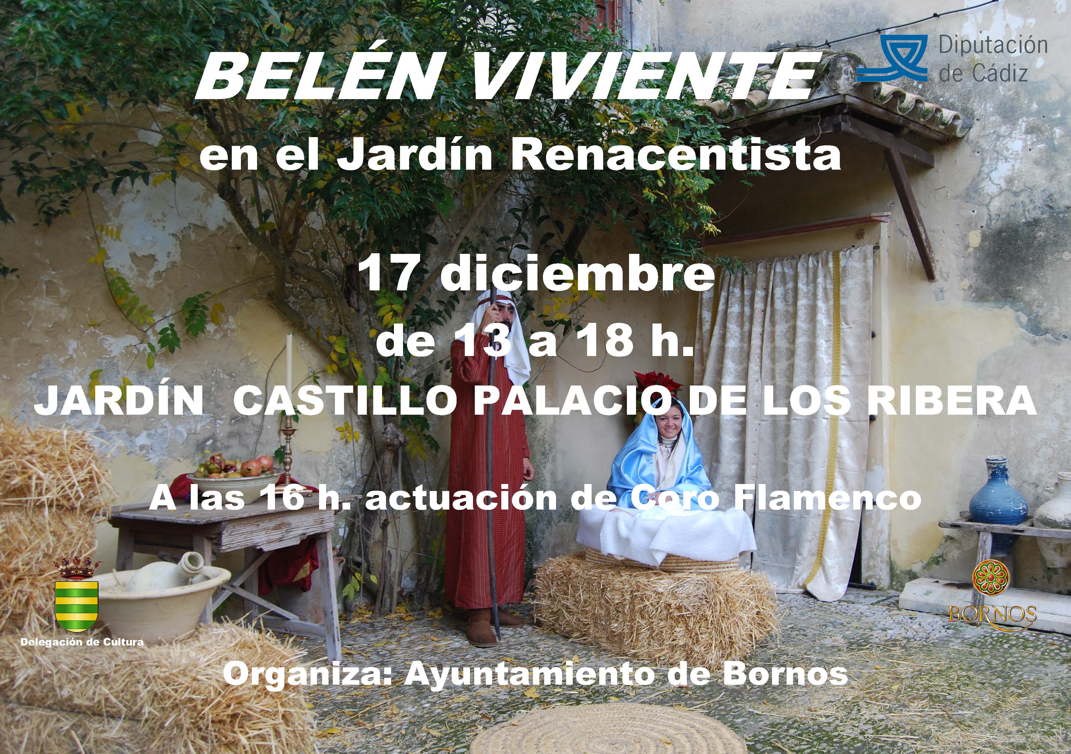 En un marco incomparable como es el Castillo Palacio de los Ribera, se van a instalar cada una de las escenas que este año conformarán el Belén bornense que son; La anunciación e inscripción a cargo de la Hermandad del Santo Entierro, el Nacimiento, a cargo de la Hermandad de la Flagelación, Los Reyes Magos y adoración al niño Jesús, a cargo de la Hermandad de la Veracruz. Habrá también un puesto de telas y alfarería, a cargo de APAFI, la Danza del Vientre, panadería, carpintería y zoco, a cargo del AMPA. del Colegio S. Juan de Ribera, Herodes y danza del vientre, a cargo de la Hermandad del Nazareno, posada y lavandería a cargo de Mayores Activos, Jesús cuando era niño Bda. de la Paz y un corralito de animales.