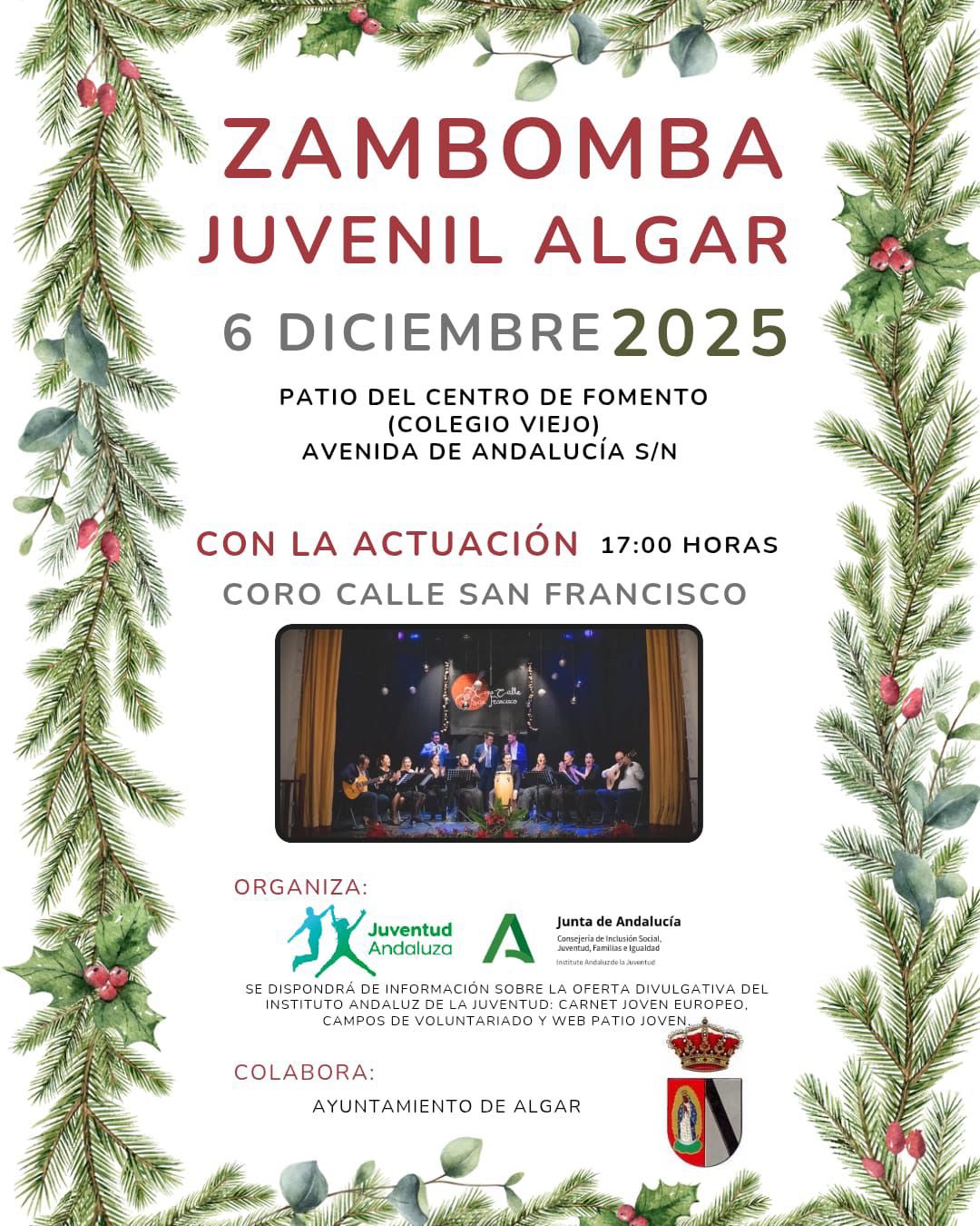 También este año contaremos con la Zambomba Juvenil a cargo del Coro Calle San Francisco de Arcos de la Frontera, que pondrá el toque festivo y navideño a la jornada.