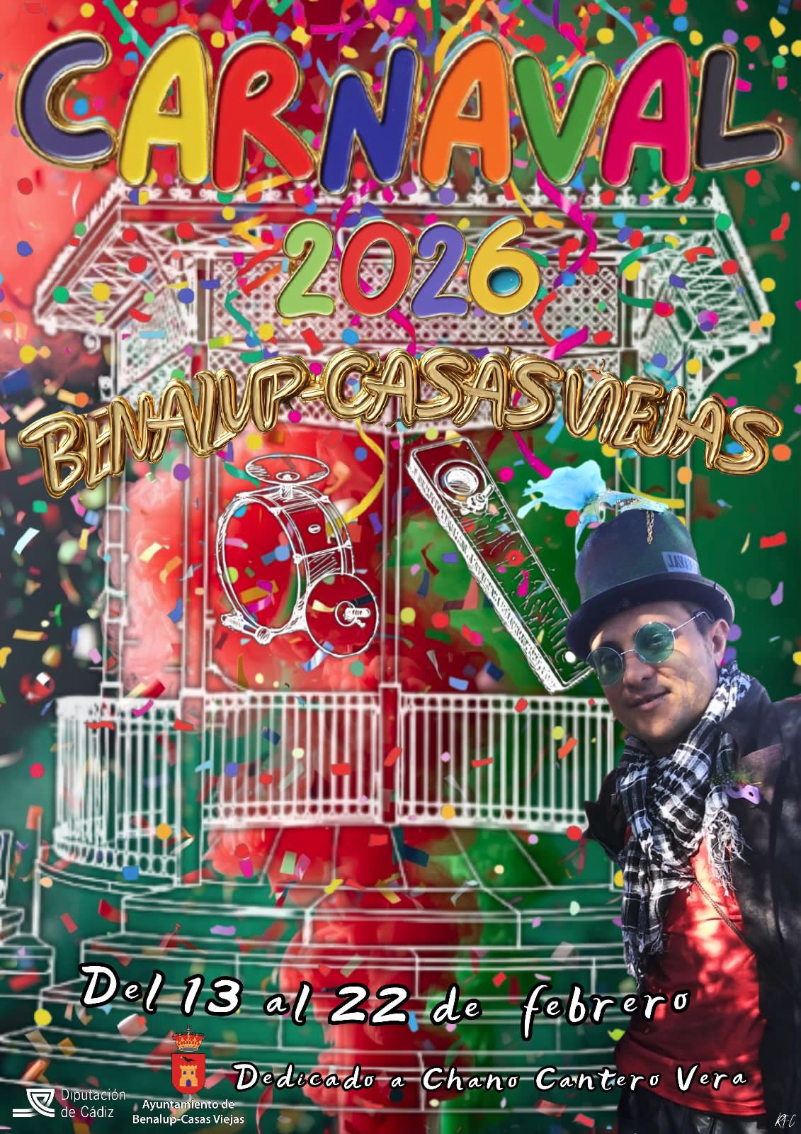 pregón del Carnaval 2026 en un acto que tendrá lugar el domingo 15 de febrero en el templete de la plaza del antiguo Ayuntamiento a las 13:00 horas.