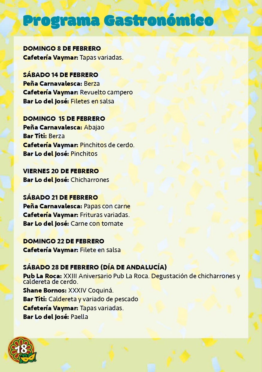 El carnaval de Bornos fue uno de los pocos que sobrevivió a la censura, de ahí que esté tan arraigado y preserve tantas tradiciones. Los disfraces, agrupaciones y la gastronomía van a conformar un programa amplio en el que se puede disfrutar, entre otros eventos de la “
