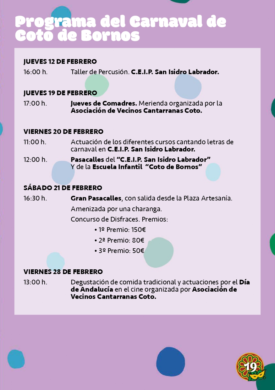 El CARNAVAL COTO DE BORNOS se celebrará del 19 al 21 de febrero