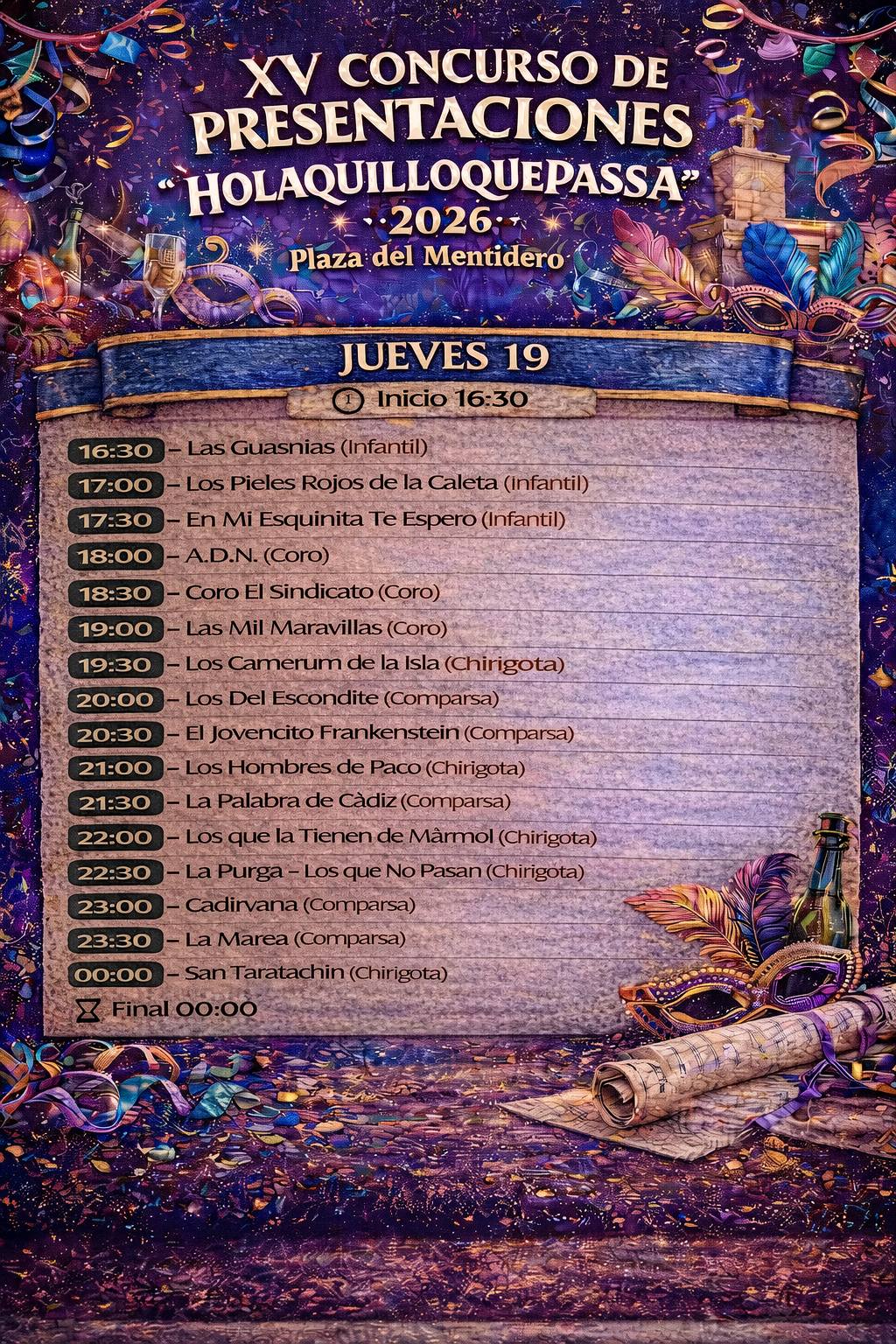 Concurso de Presentaciones “Holaquilloquepasa” del Carnaval de Cádiz.