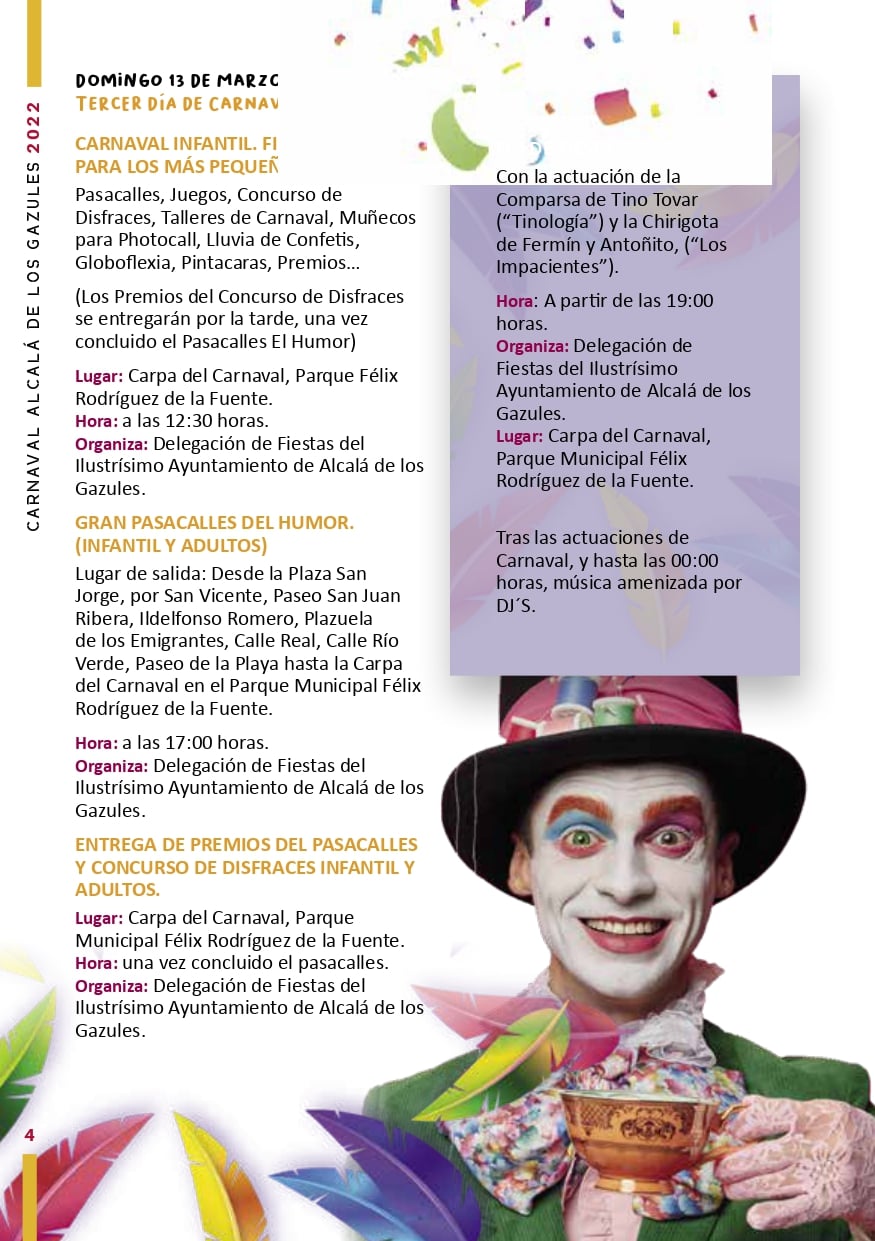 PROGRAMACIÓN DEL CARNAVAL DE ALCALÁ DE LOS GAZULES 2022