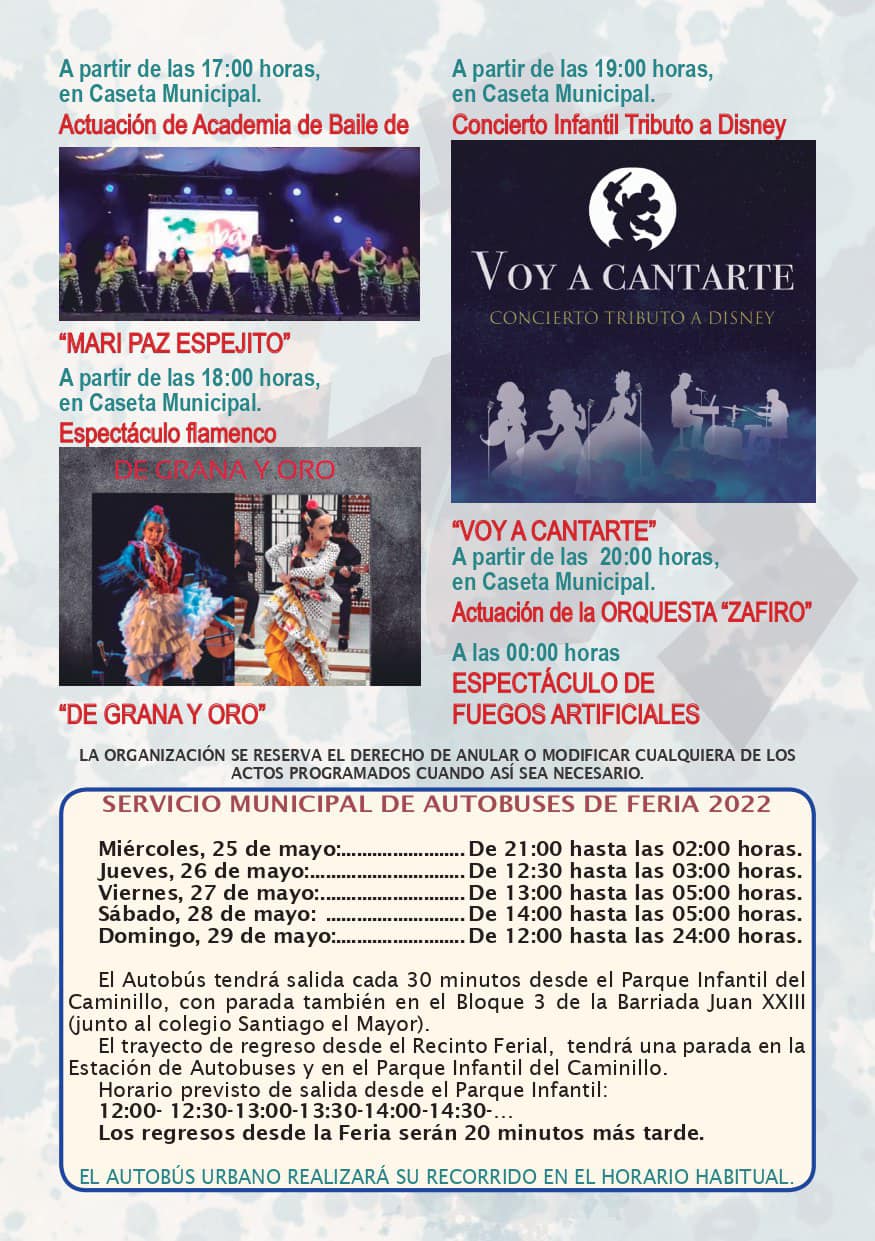 del 25 al 29 de mayo de 2022 junto con la Feria del Ganado. Numerosas actuaciones integran su programación.