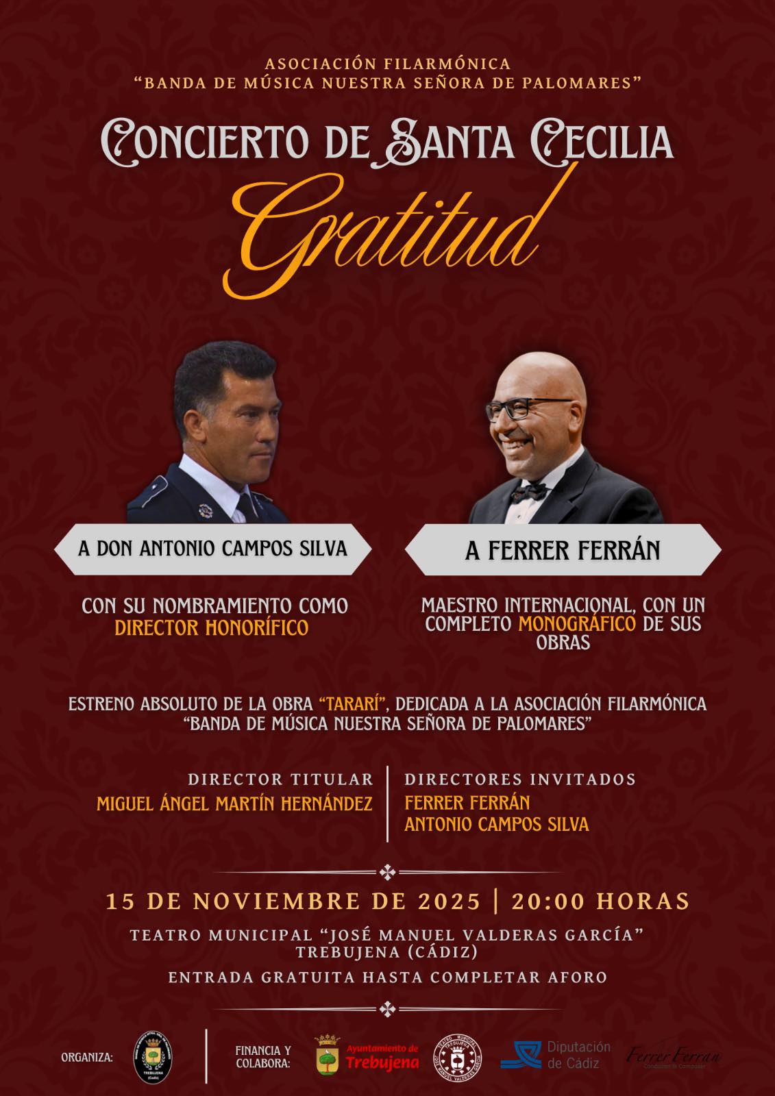 Bajo su batuta, sonará un monográfico de sus obras, lleno de energía, color y vida... Y como broche dorado, el estreno absoluto de "Tararí", una obra dedicada con todo cariño a nuestra AFBM "Nuestra Señora de Palomares".