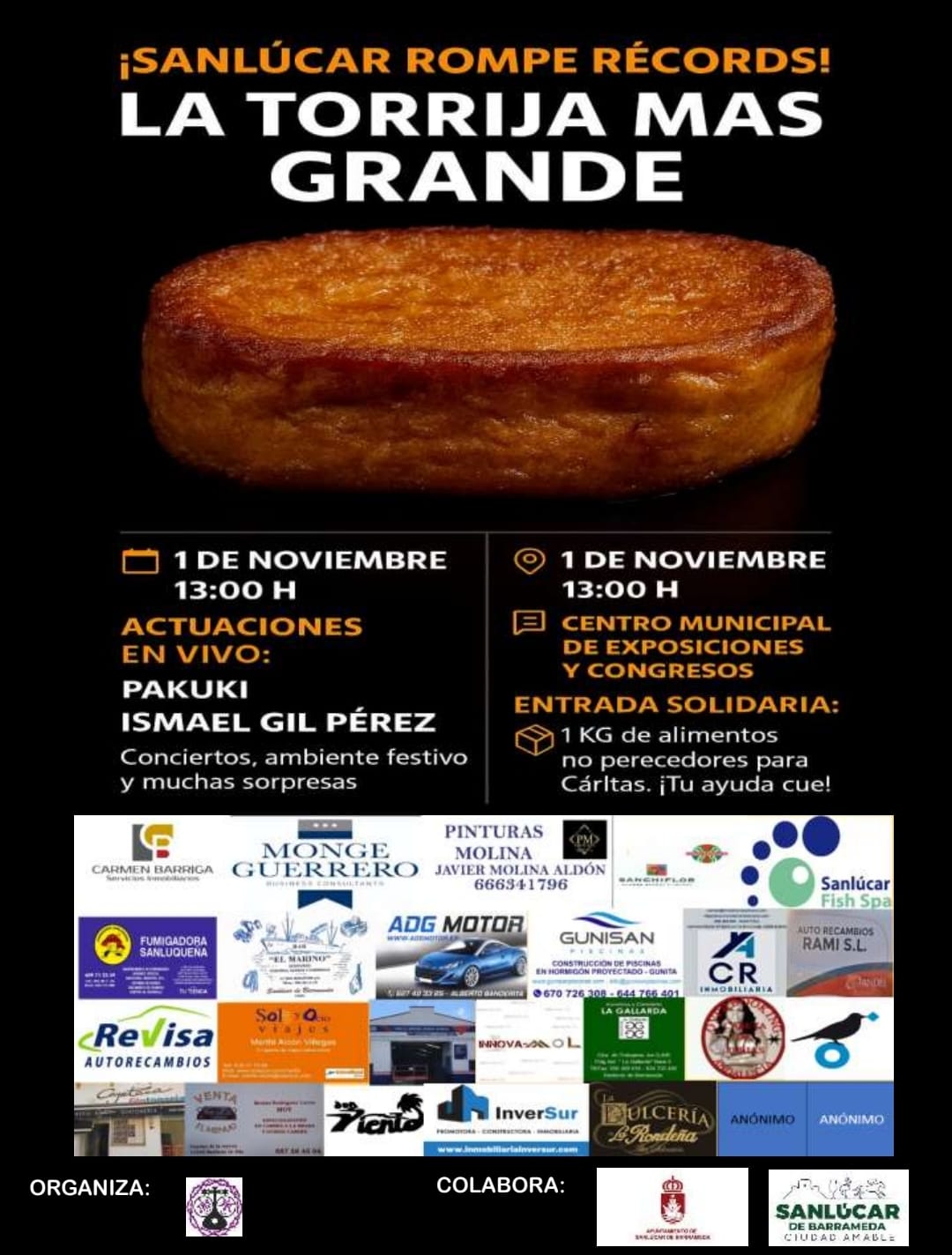El Ayuntamiento de Sanlúcar y numerosas empresas colaboran en la organización de esta cita benéfica que, un año más, promueve la Hermandad del Consuelo con el atractivo de plantear la consecución de un récord gastronómico. De hecho, cada edición, ésta es la decimocuarta, reúne a muchos sanluqueños que, de este modo, apoyan una causa solidaria.