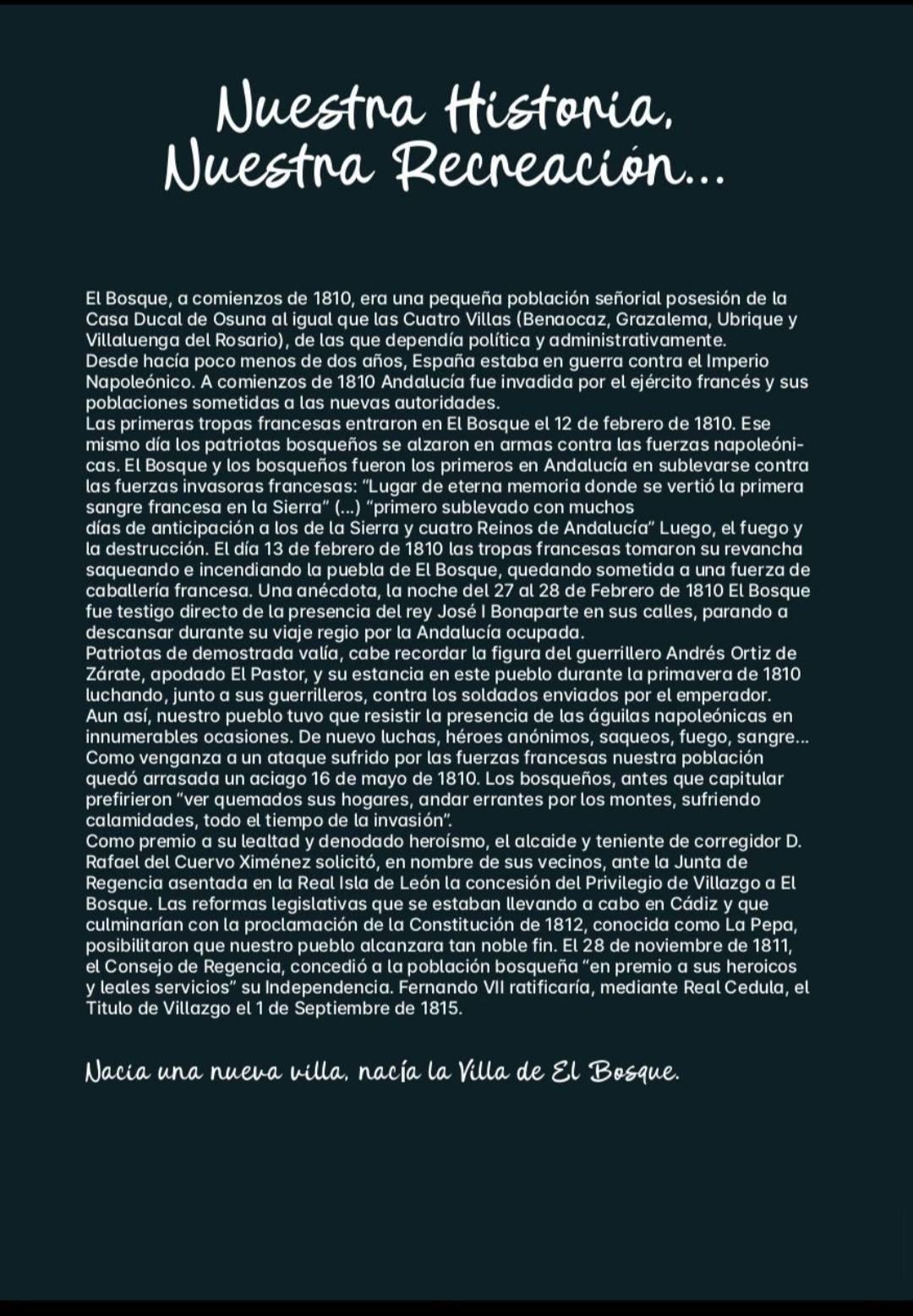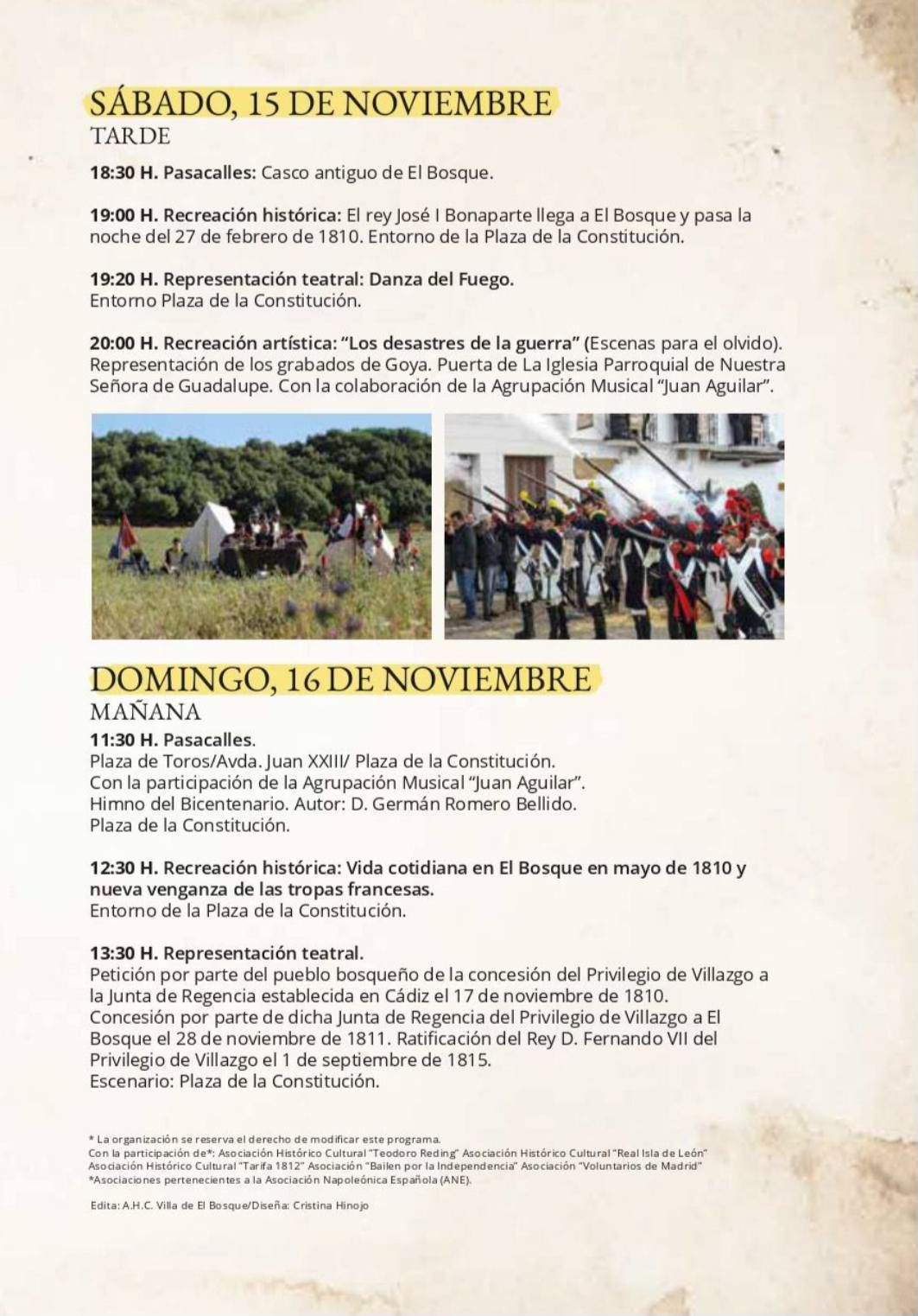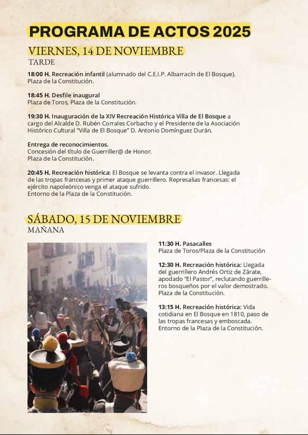 Como cada tercer fin de semana de noviembre la localidad de la Sierra de Cádiz ofrecerá una imagen detenida del tiempo, gracias a brillantes representaciones teatrales reviviendo lo ocurrido hace doscientos años, con sus vecinos ataviados de época y enfrentados a las tropas napoleónicas.