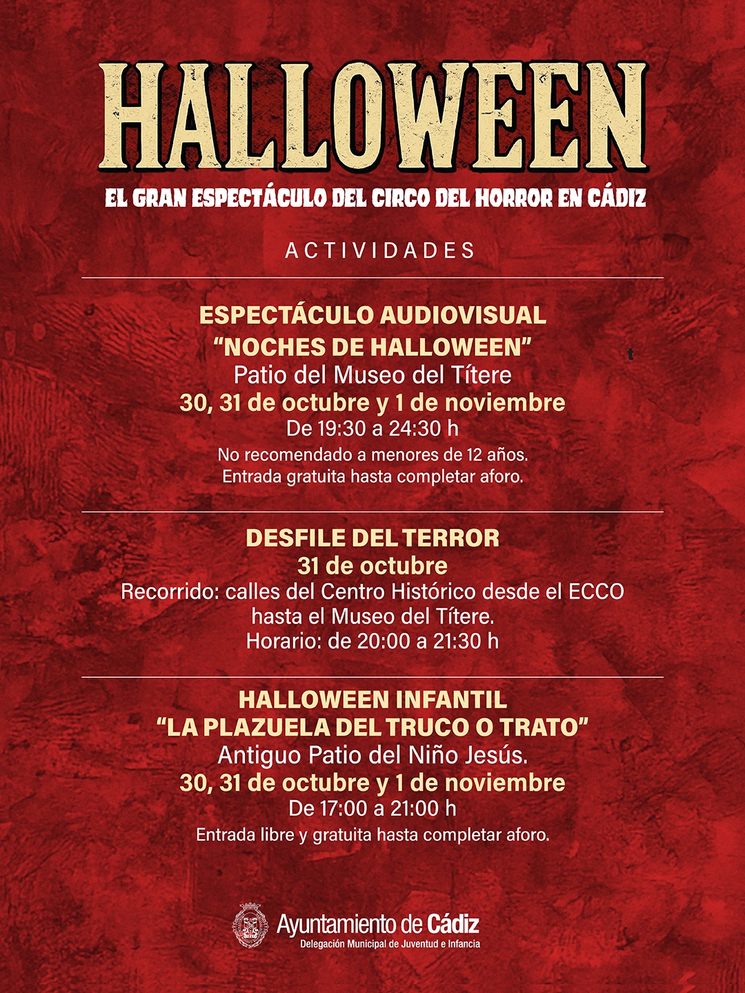 El Ayuntamiento de Cádiz ha presentado una nueva edición de Halloween con espectáculos y actividades pensadas para todos los públicos, que en este año se celebrarán en el centro de la ciudad y extramuros.
