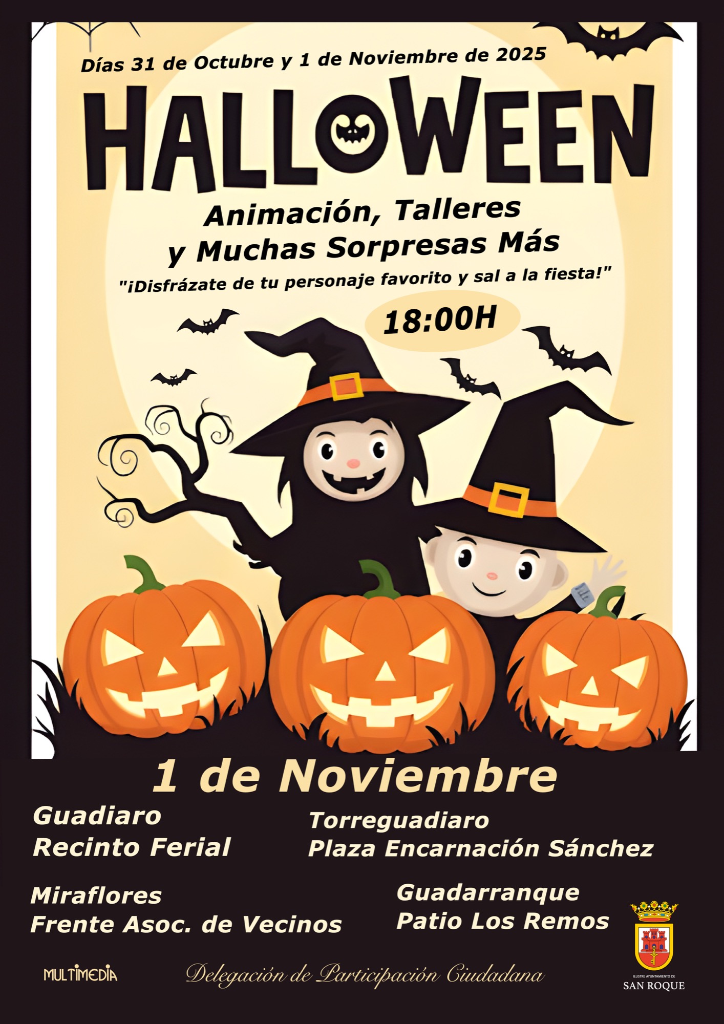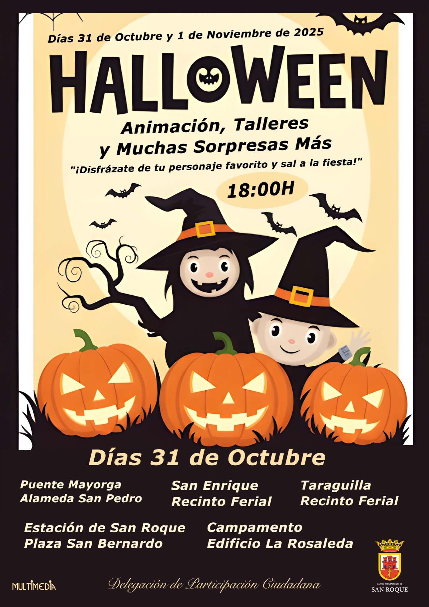 Halloween llegará a cada una de las barriadas del municipio sanroqueño con animación, talleres y muchas sorpresas organizadas por la Delegación de Participación Ciudadana. Las actividades serán en las tardes del viernes 31 de octubre y del sábado 1 de noviembre.
