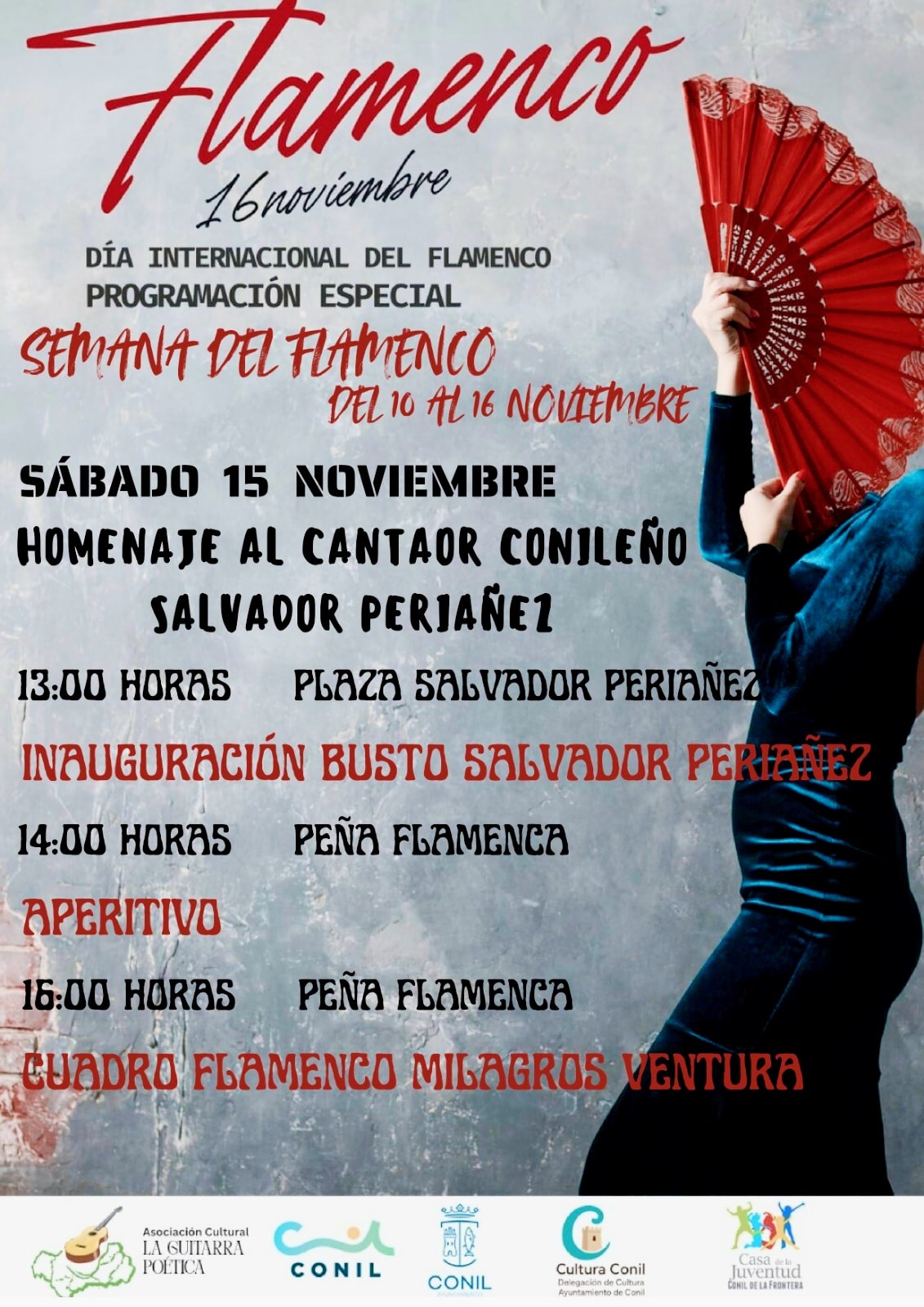 El sábado 15 de noviembre, a las 13:00 h, se vivirá un momento muy especial con el homenaje al cantaor conileño Salvador Periañez, y la inauguración de un busto en su honor en la plaza que lleva su nombre.