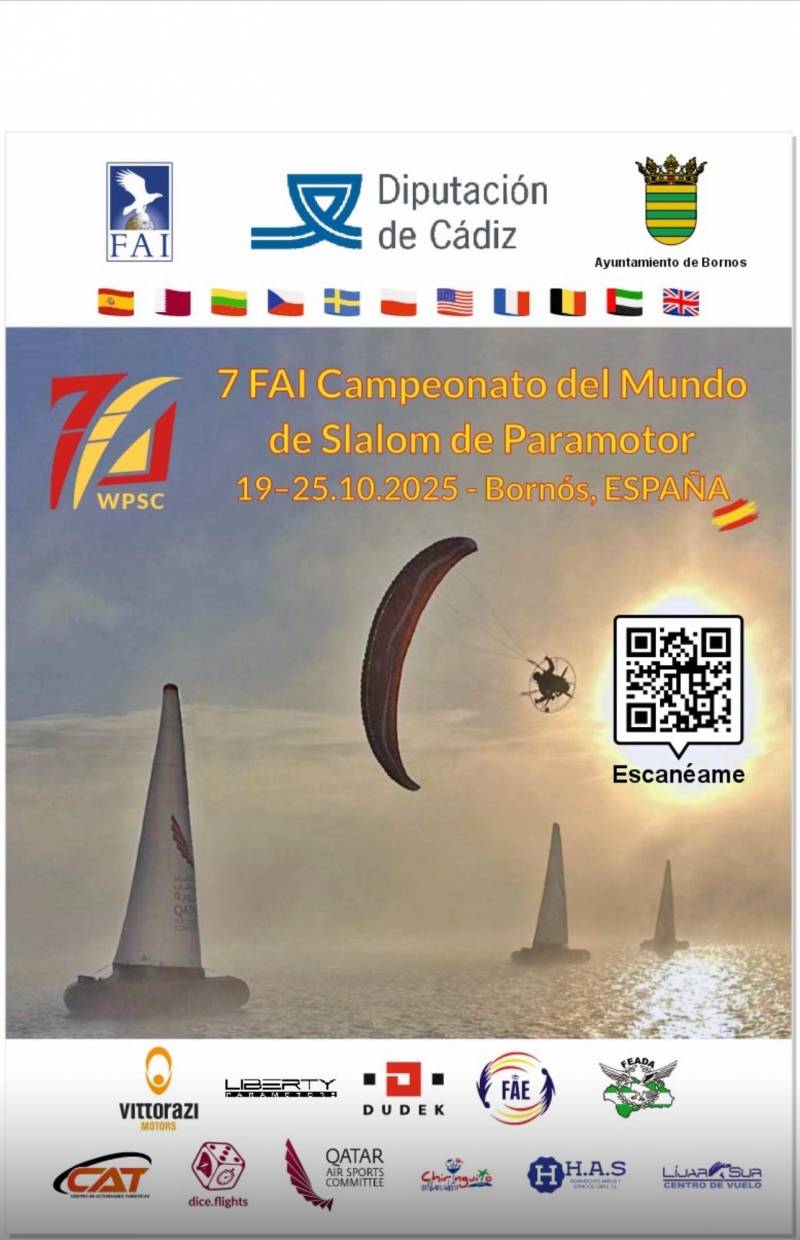 Del 19 al 25 de octubre de 2025 Bornos vuelve a acoger el VII Campeonato del mundo de paramotor Slalom.