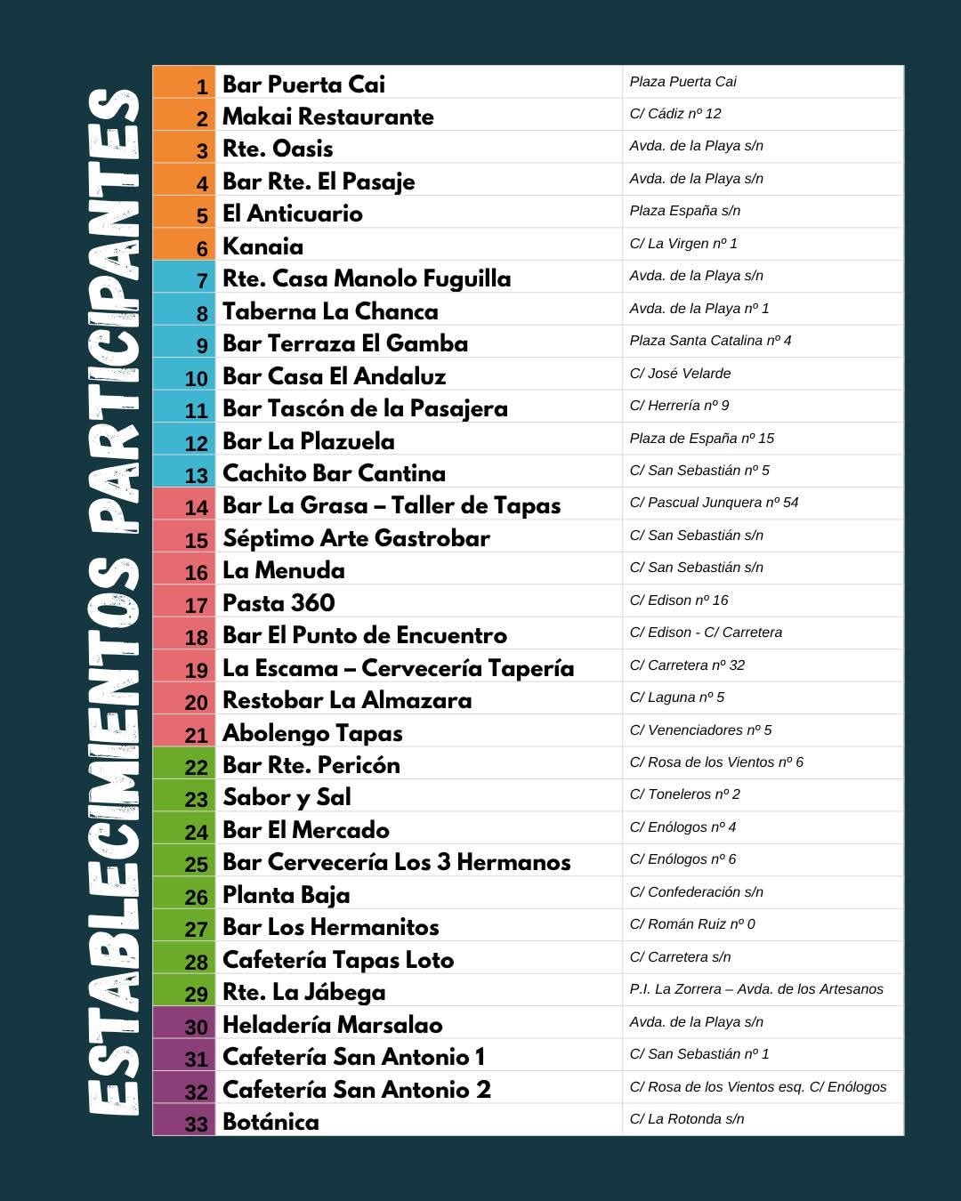 Ruta de la Tapa, organizada por la Asociación de Empresas y Comercios de Conil, con la colaboracion del Ayuntamiento.