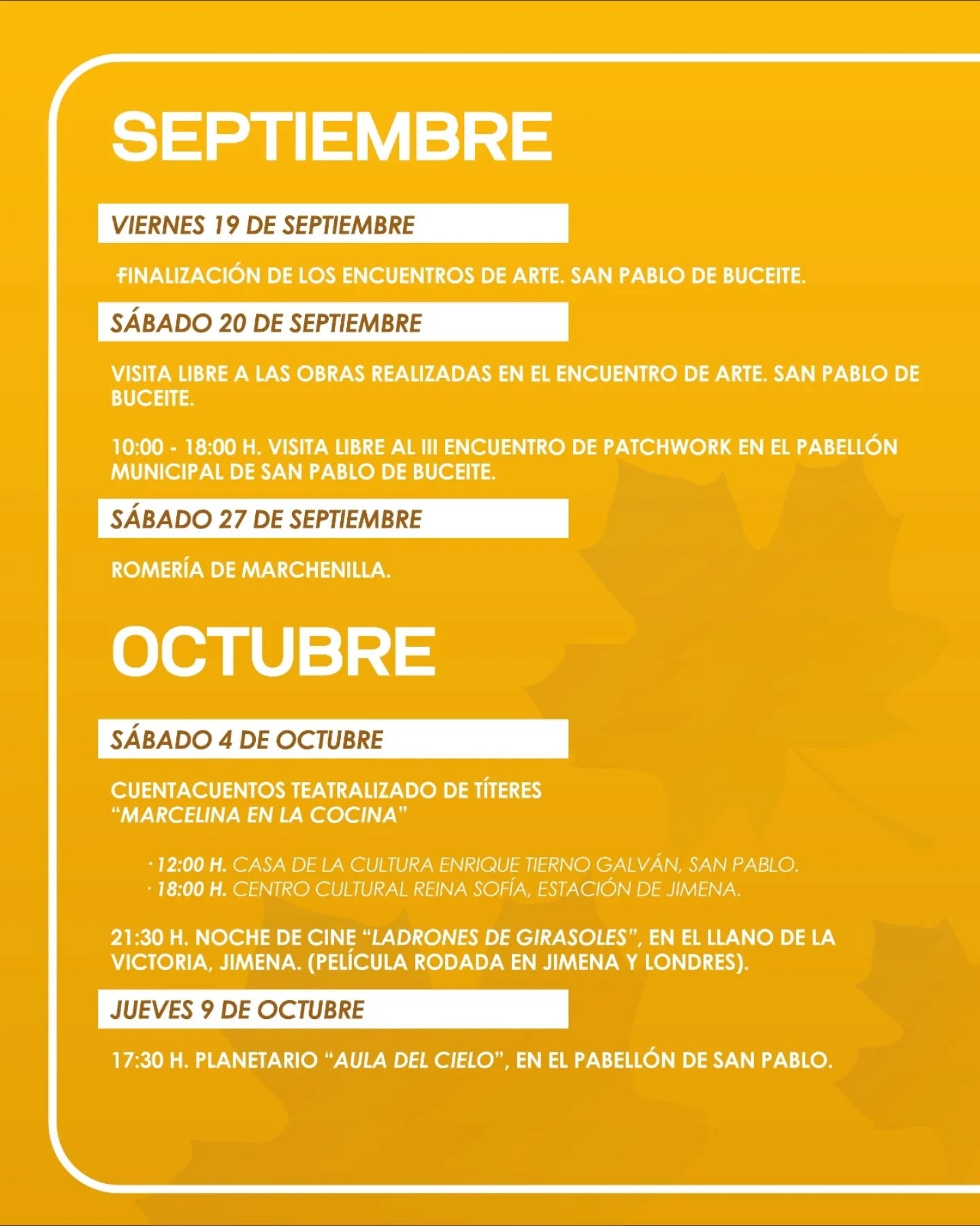 Agenda de otoño Jimena de la Frontera 2025 - Eventos culturales | Agenda de Guía de Cádiz