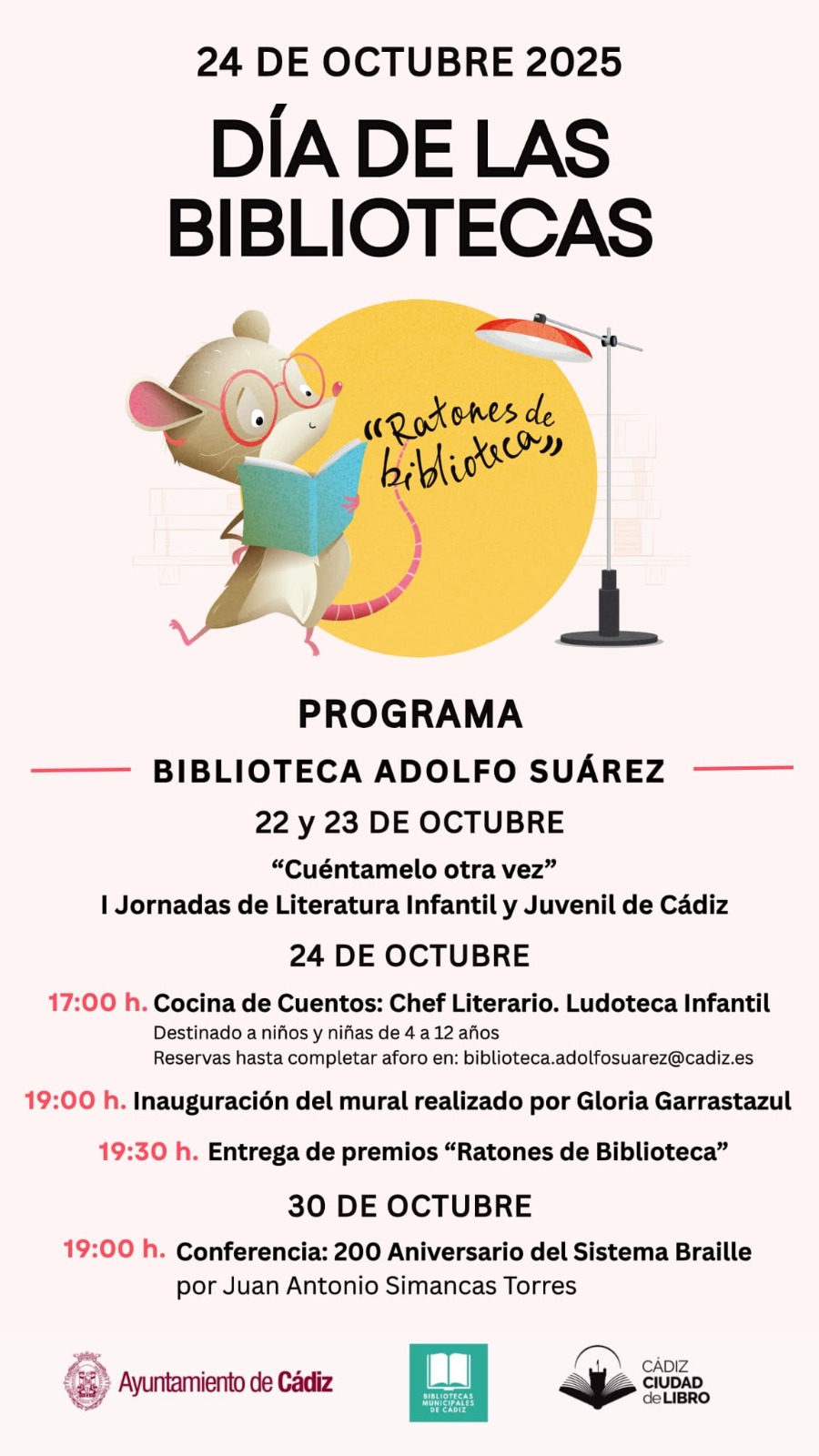 Como cada año, las bibliotecas municipales de Cádiz se unen a la iniciativa internacional para celebrar el Día de las Bibliotecas, el próximo 24 de octubre.