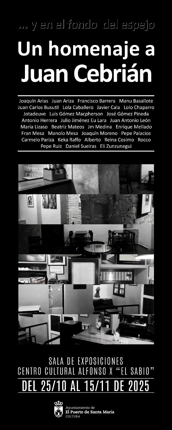 El viernes 24 de septiembre, a partir de las 20:00 h., tendrá lugar en el Centro Cultural Municipal Alfonso X “El Sabio” (C/ Larga, 89) la inauguración de la exposición de fotografías “..Y en el fondo del espejo” Un homenaje a Juan Cebrián. Esta muestra está organizada por la Concejalía de Cultura.