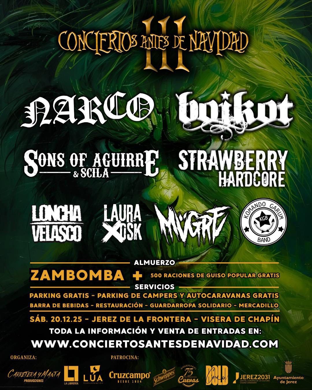 En esta edición cabe destacar la participación de grandes bandas de renombre, como Narco, Boikot, Sons of Aguirre & Scila, o Strawberry Hardcore, que apuntan a Jerez como única cita para volver a ver en directo a grupos míticos de la escena nacional.