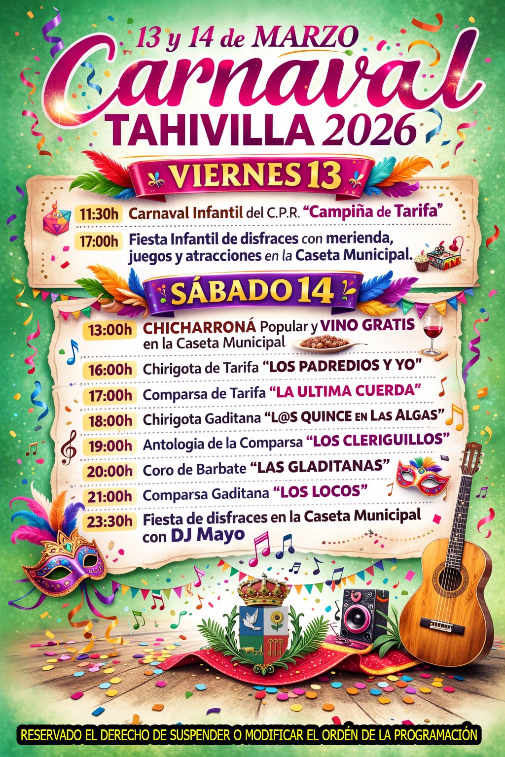 Tahivilla, entidad local dentro del municipio de Tarifa, celebra su Carnaval del 13 al 14 de marzo de 2026.