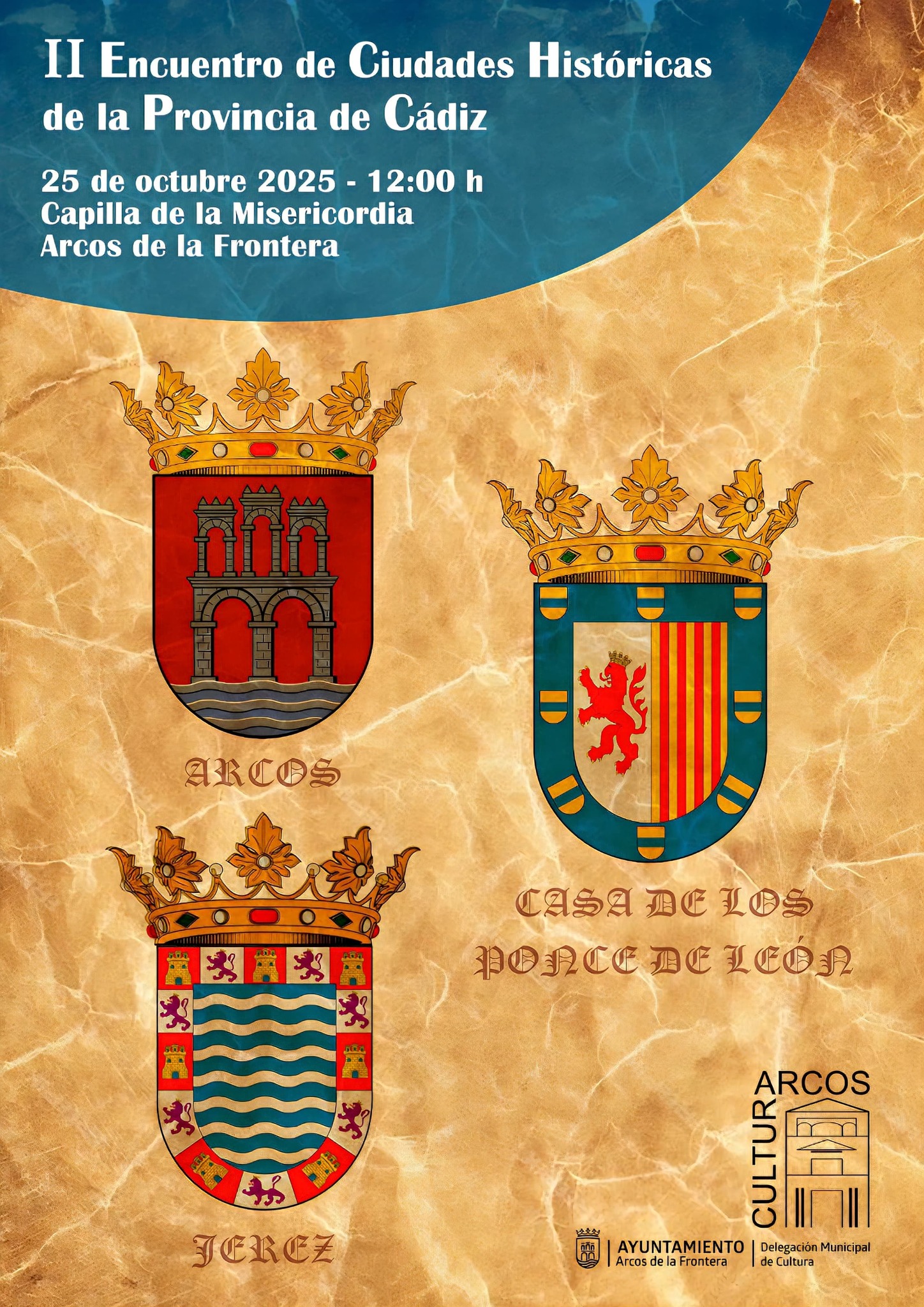 El delegado municipal de Cultura, Andrés Camarena Muñoz, ha anunciado la celebración del II Encuentro de Ciudades Históricas de la Provincia de Cádiz, una cita que consolida a Arcos como punto de referencia en la reflexión y divulgación de nuestro patrimonio histórico y artístico.