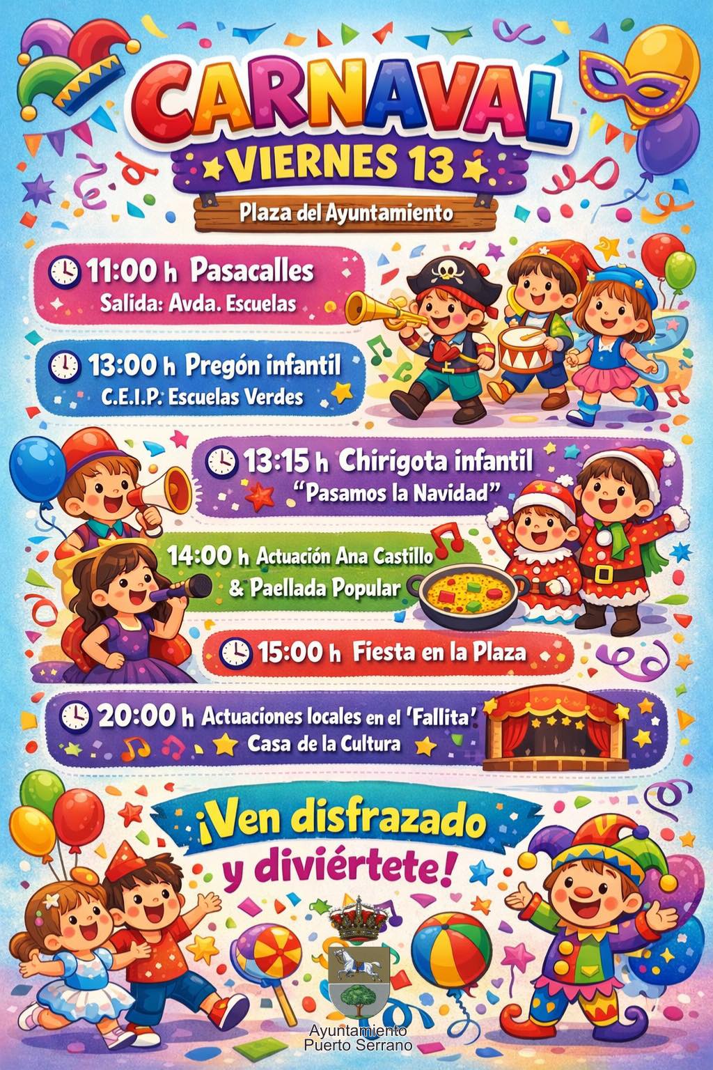 El Carnaval de Puerto Serrano 2026 tendrá lugar del 13 al 22 de febrero.