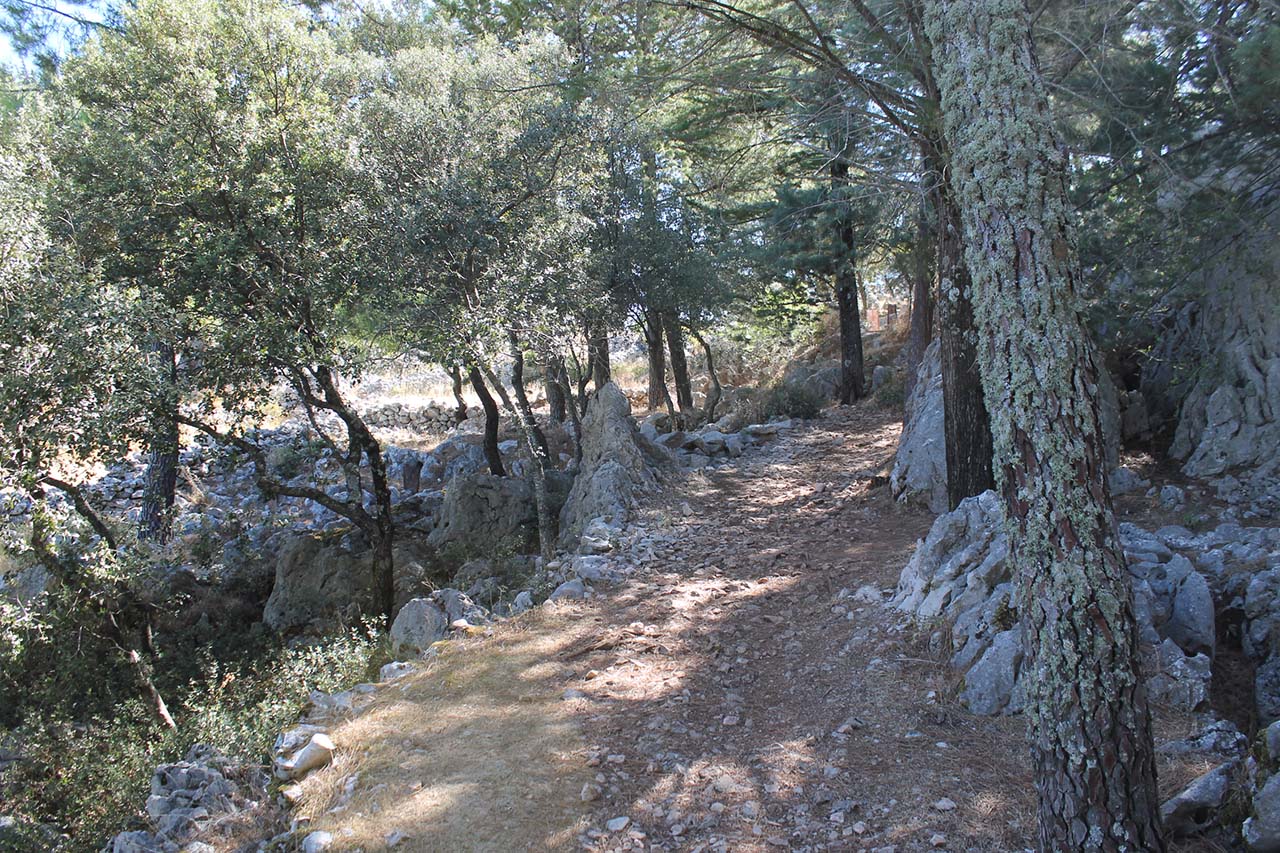 Observa que en distintos puntos de este camino empedrado aún existen algunos de los pedestales y plintos que fueron labrados en la piedra caliza para, en las distintas estaciones de penitencia, colocar la cruz.